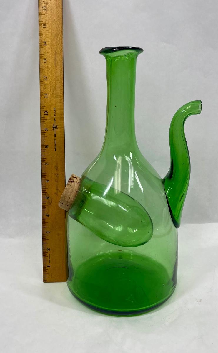Vintage Hand Blown Green Glass Wine Decanter w/ ice chamber
