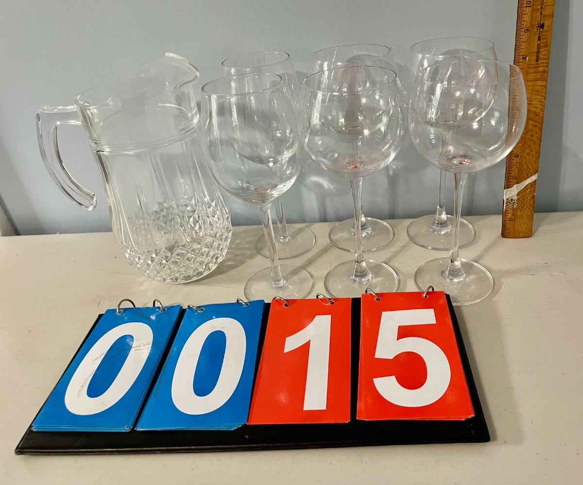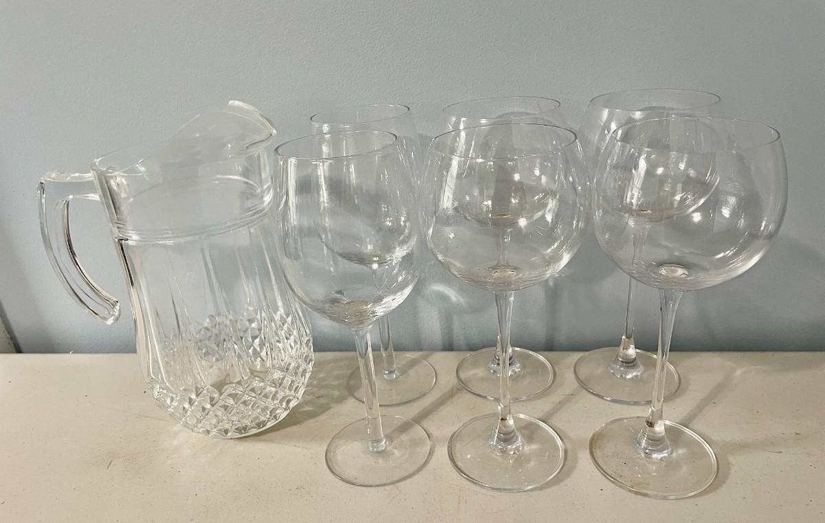 Wine glass + pitcher 7pc lot