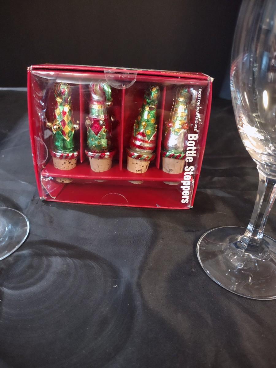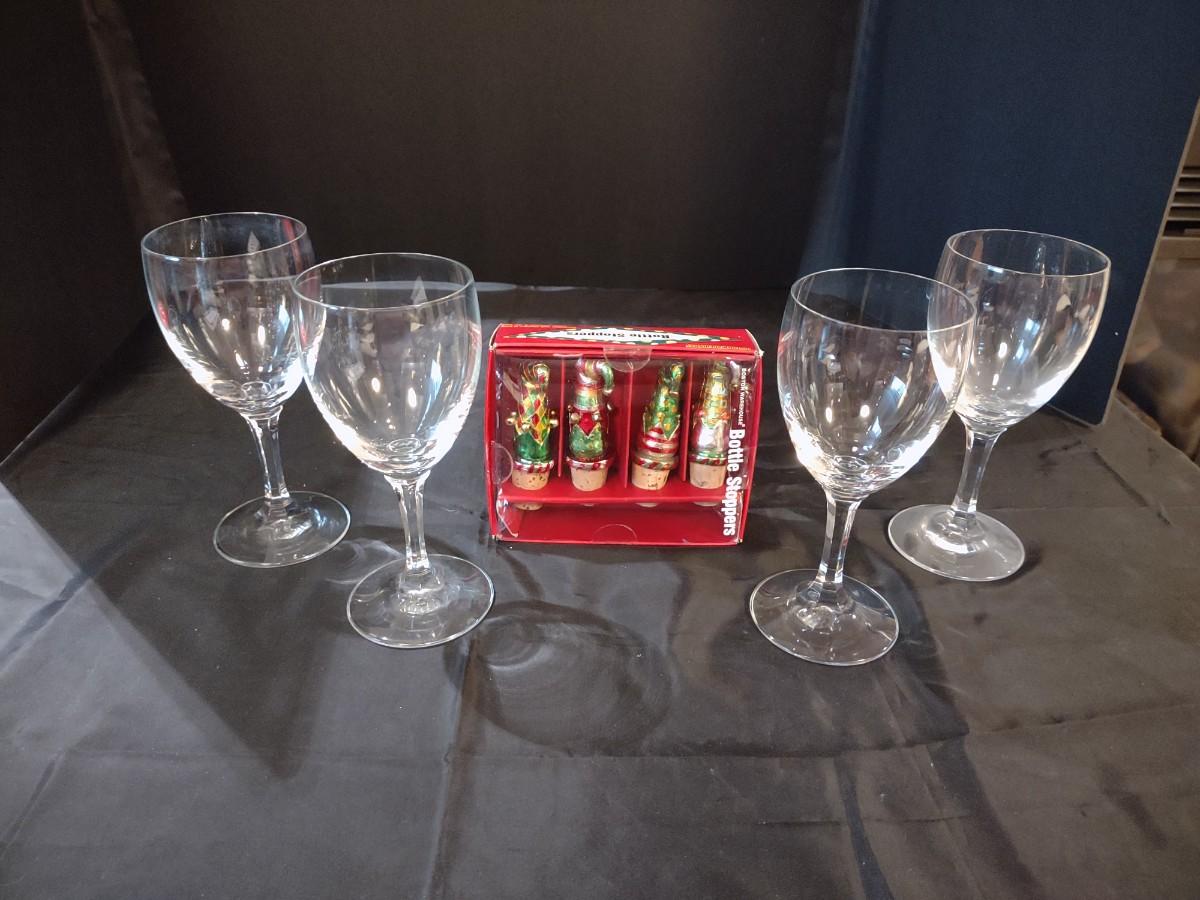 WINE GLASSES AND CHRISTMAS BOTTLE STOPPER