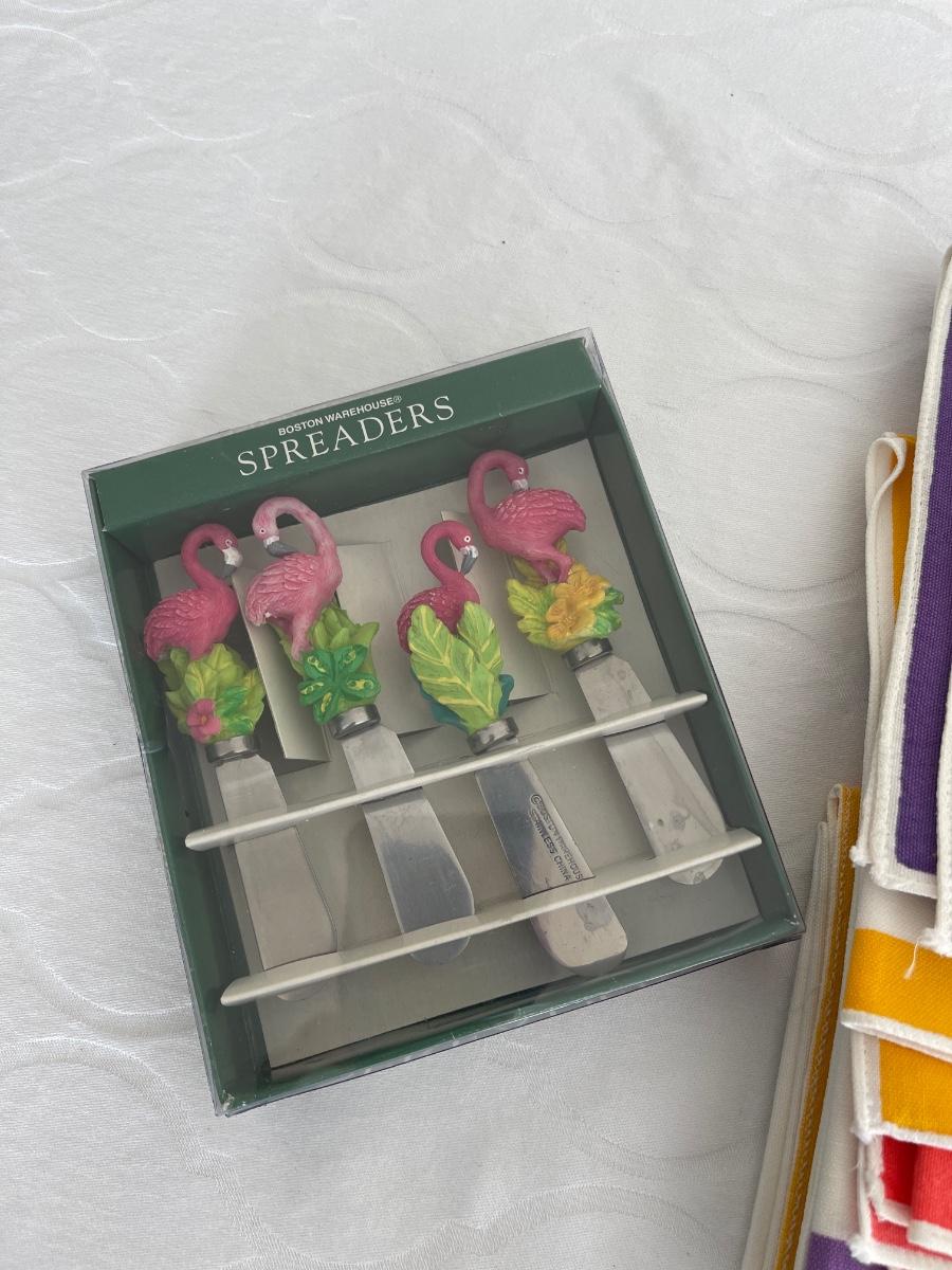 Wine glasses, cloth napkins and for butter knife spreaders.