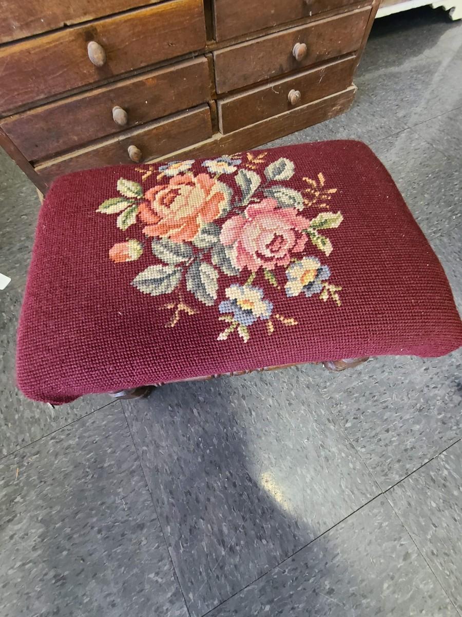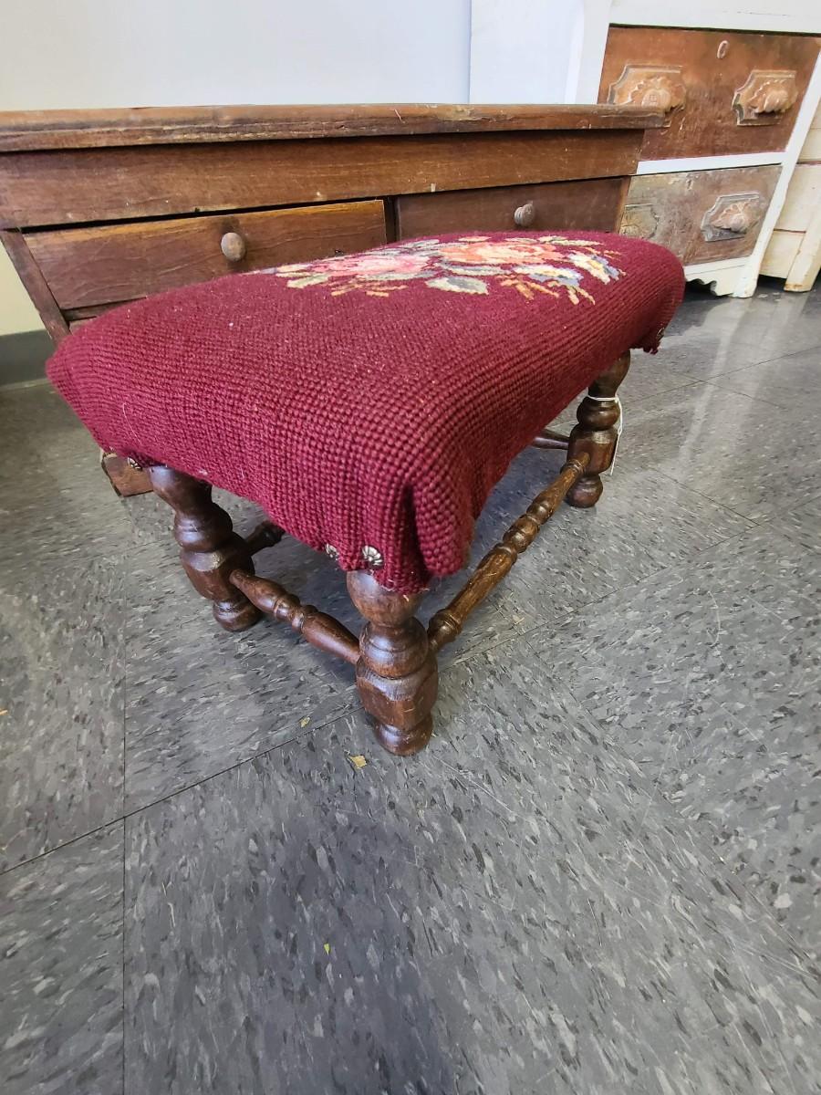 Wine Needlepoint Footstool - 15 1/2 x 10 inches and 10 tall