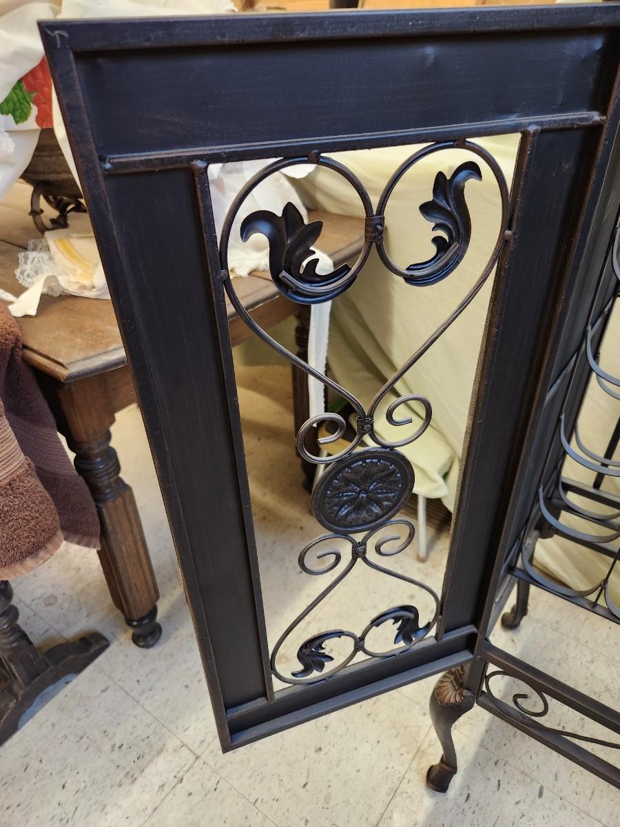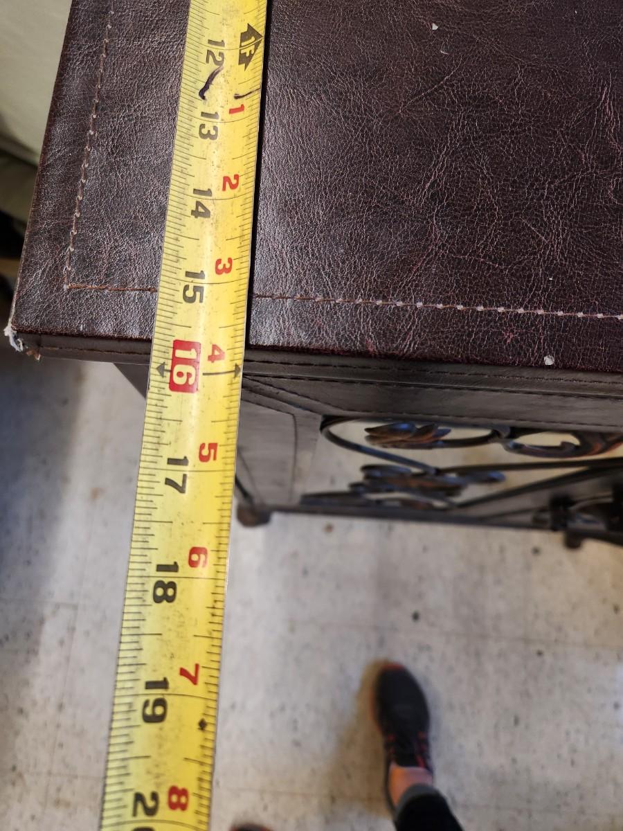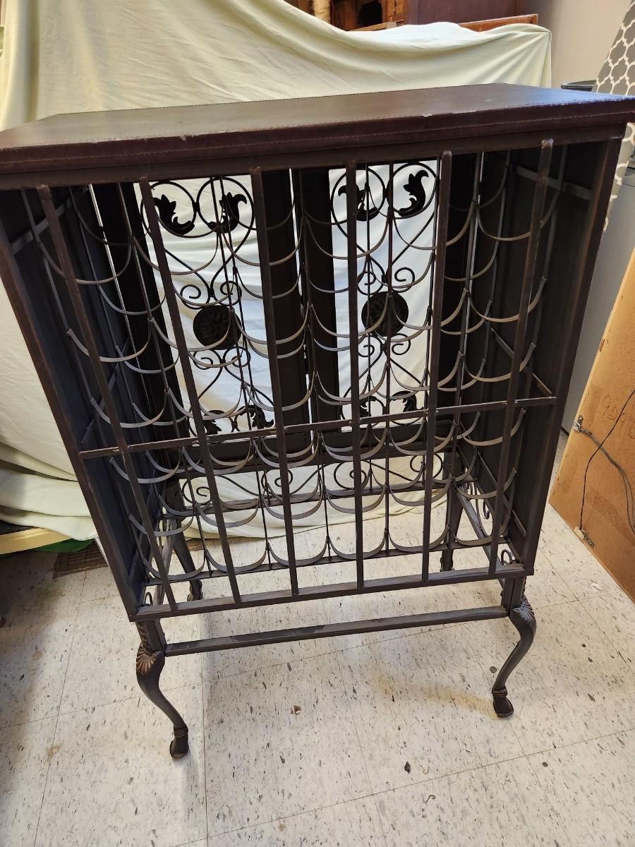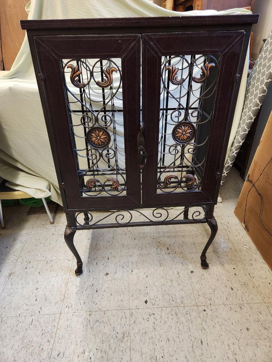 Metal, leather wrapped wine cabinet. Nice solid decorative piece