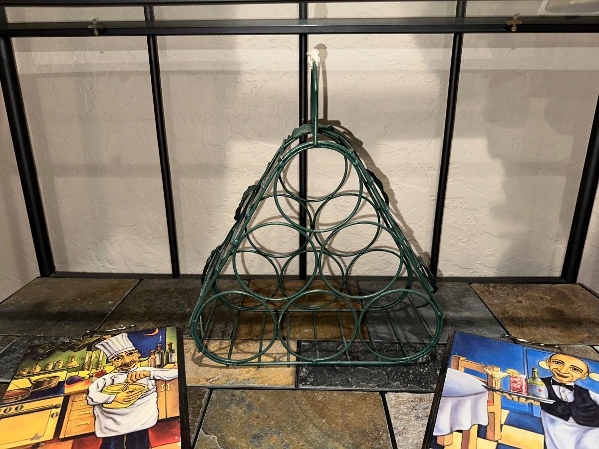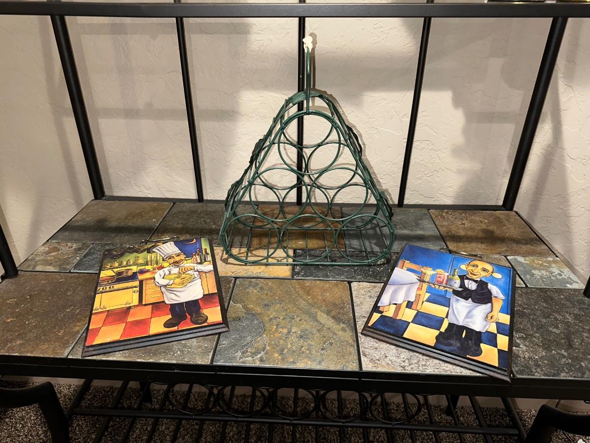 WINE RACK AND 2 WALL HUNG PICTURES