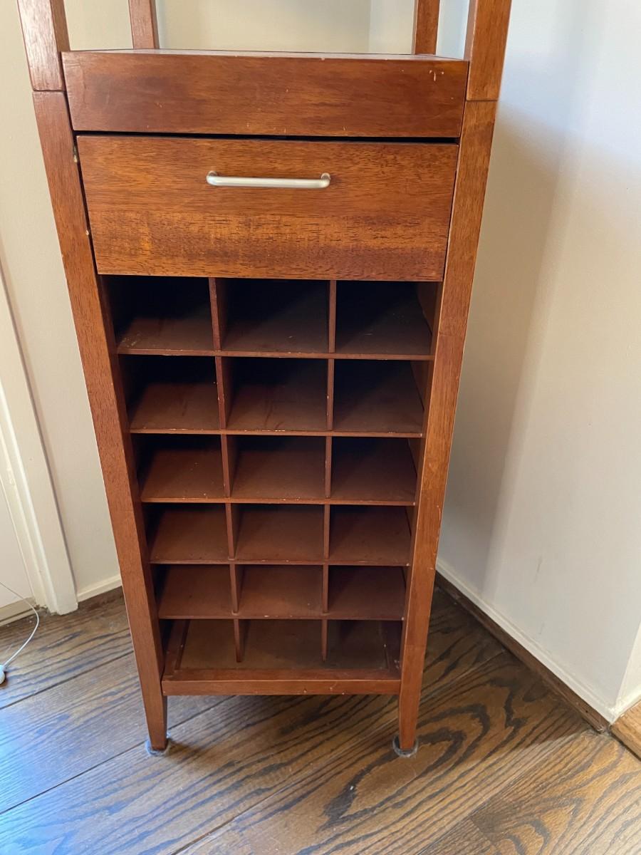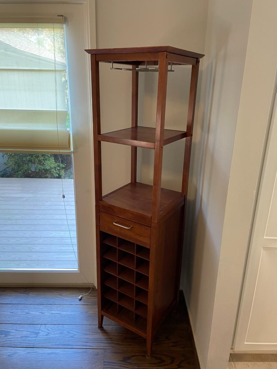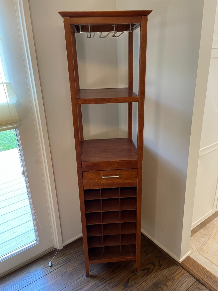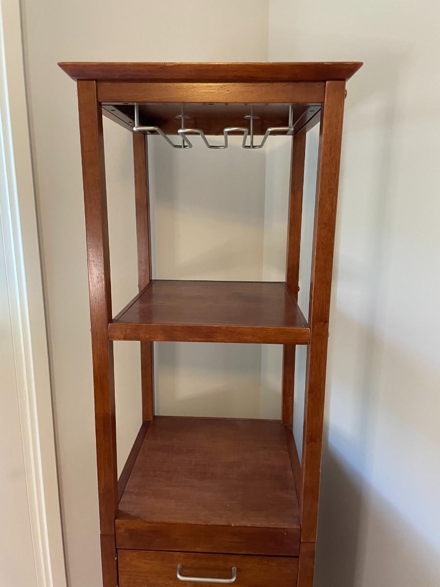 Like new. 67 1/2H x 4W x 4D. Has metal glass holder built on top.