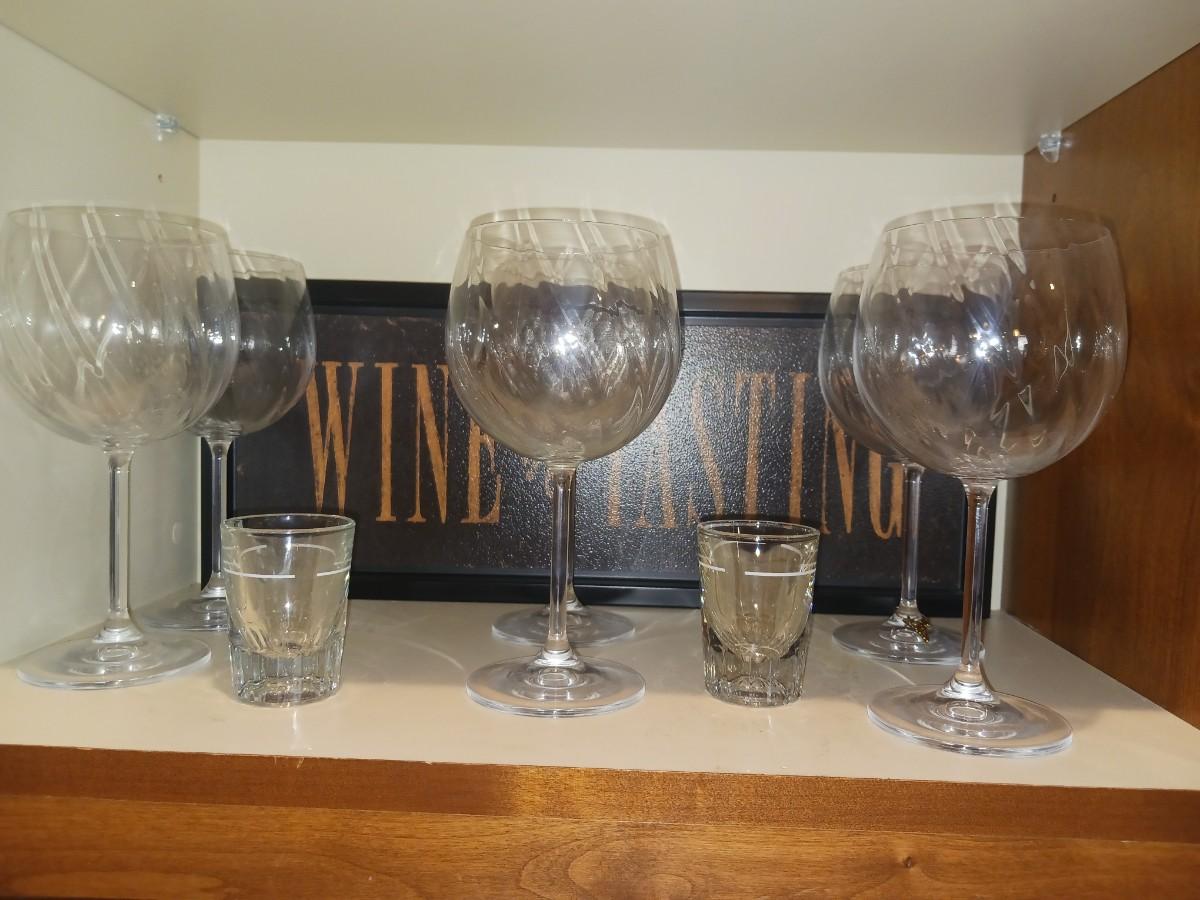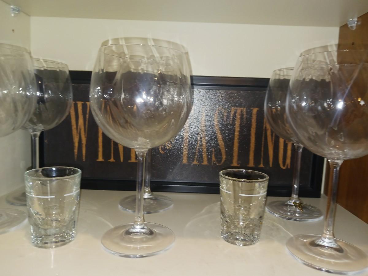 WINE TASTING SIGN, CRYSTAL STEMMED GLASSES AND MORE