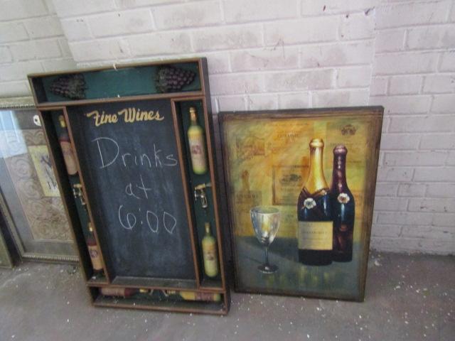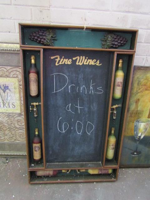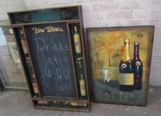 Wine Themed Wall Decor (Loc). 'Fine Wines' hanging is a chalkboard.