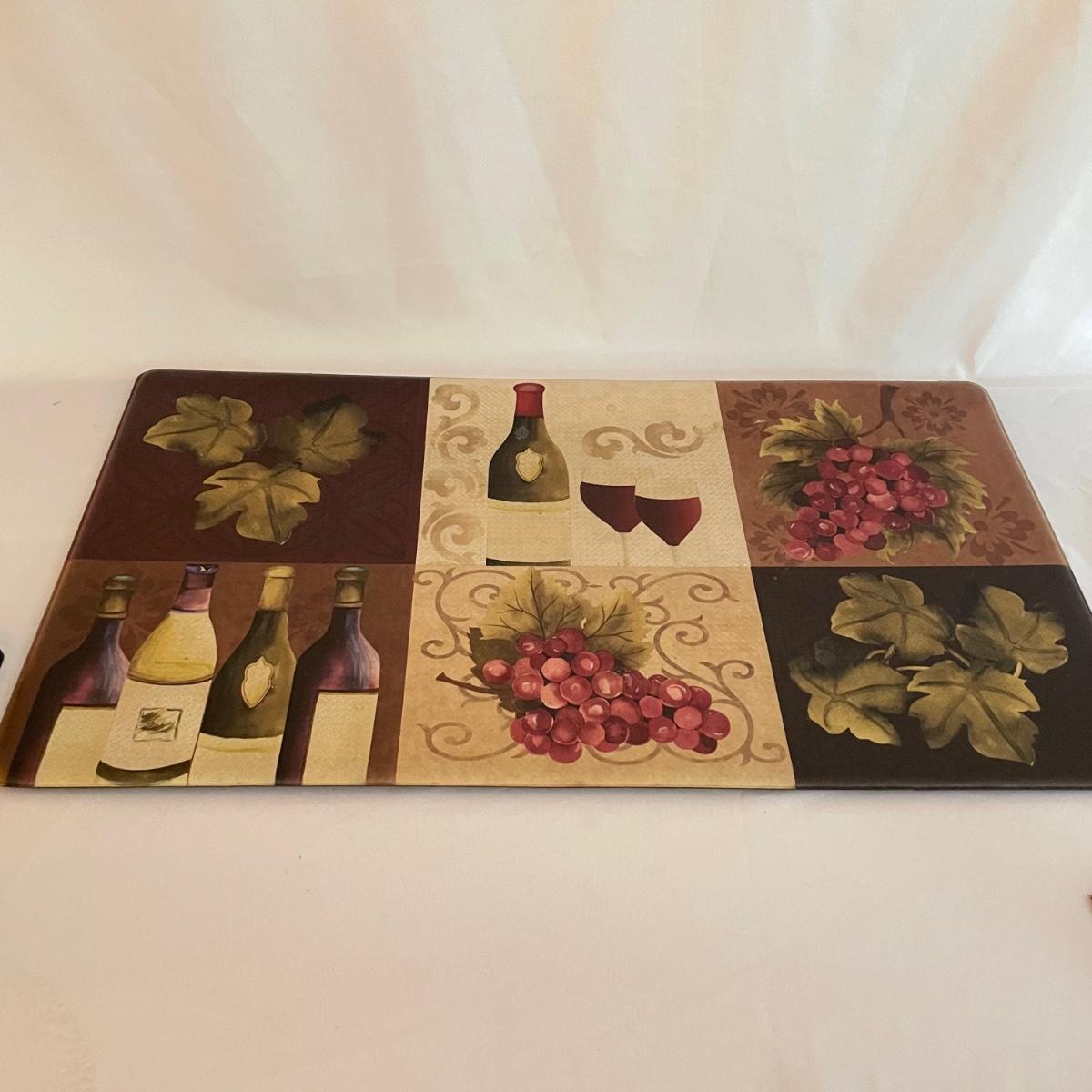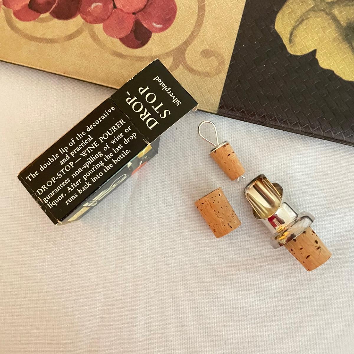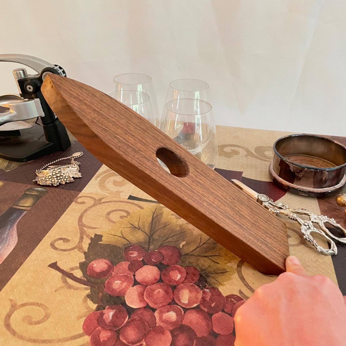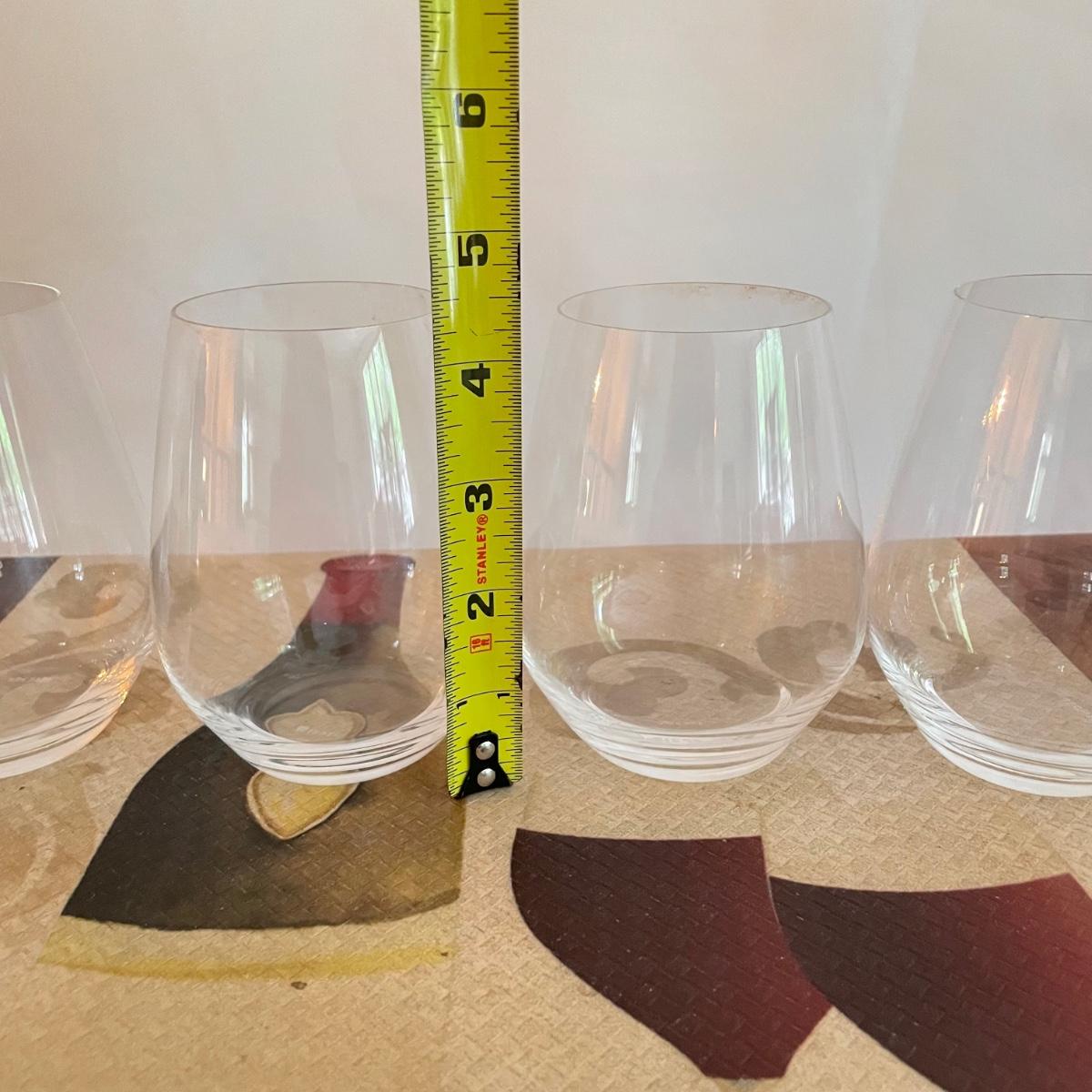Four Riedel stemless wine glasses with a wine bottle holder that balances with a full bottle. The cushioned kitchen mat measures 35” x 20”. Lot also includes a ScrewPull to make opening a bottle a snap! Vintage wine bottle coaster, grape scissors, Burgundy decanter label, stoppers and a pourer. See images. Local pick up only.