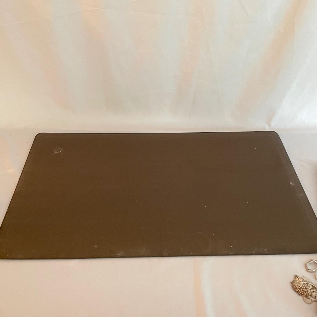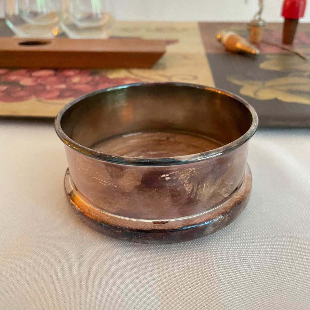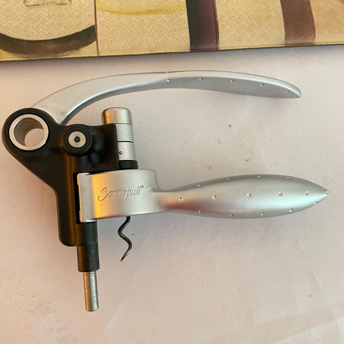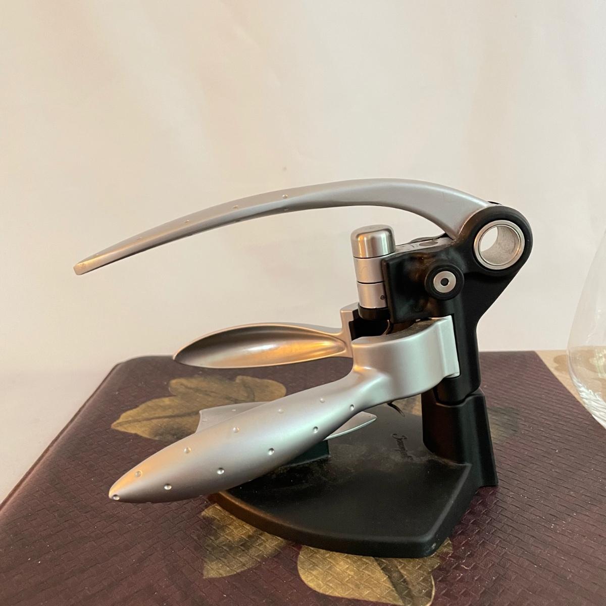 Four Riedel stemless wine glasses with a wine bottle holder that balances with a full bottle. The cushioned kitchen mat measures 35” x 20”. Lot also includes a ScrewPull to make opening a bottle a snap! Vintage wine bottle coaster, grape scissors, Burgundy decanter label, stoppers and a pourer. See images. Local pick up only.
