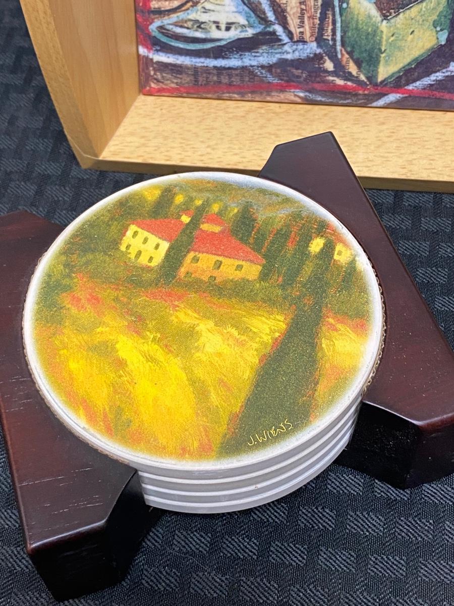 Wine Vino Wood Tray and Spanish Countryside Coasters