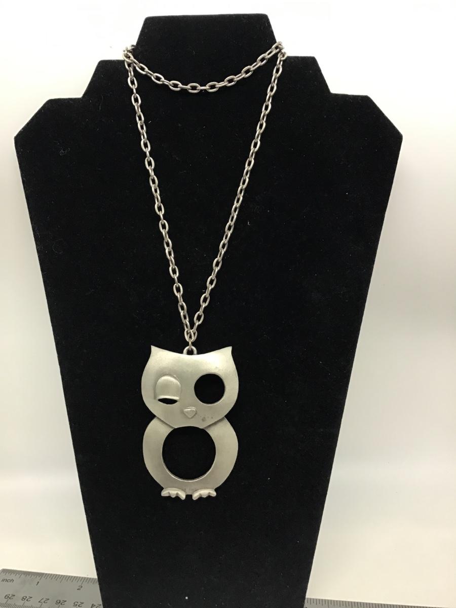 Winking Owl Pendant Necklace Vintage Modernist