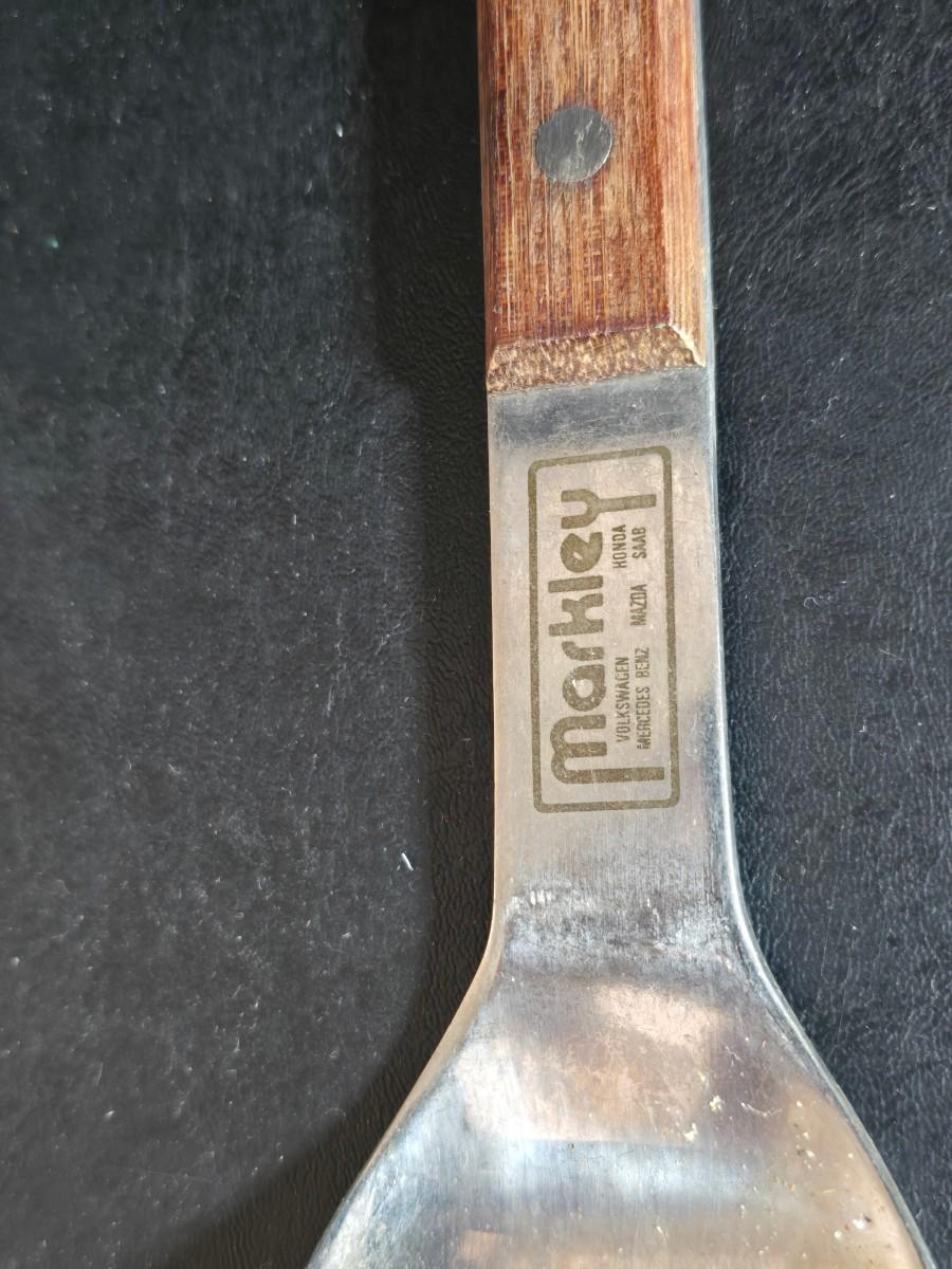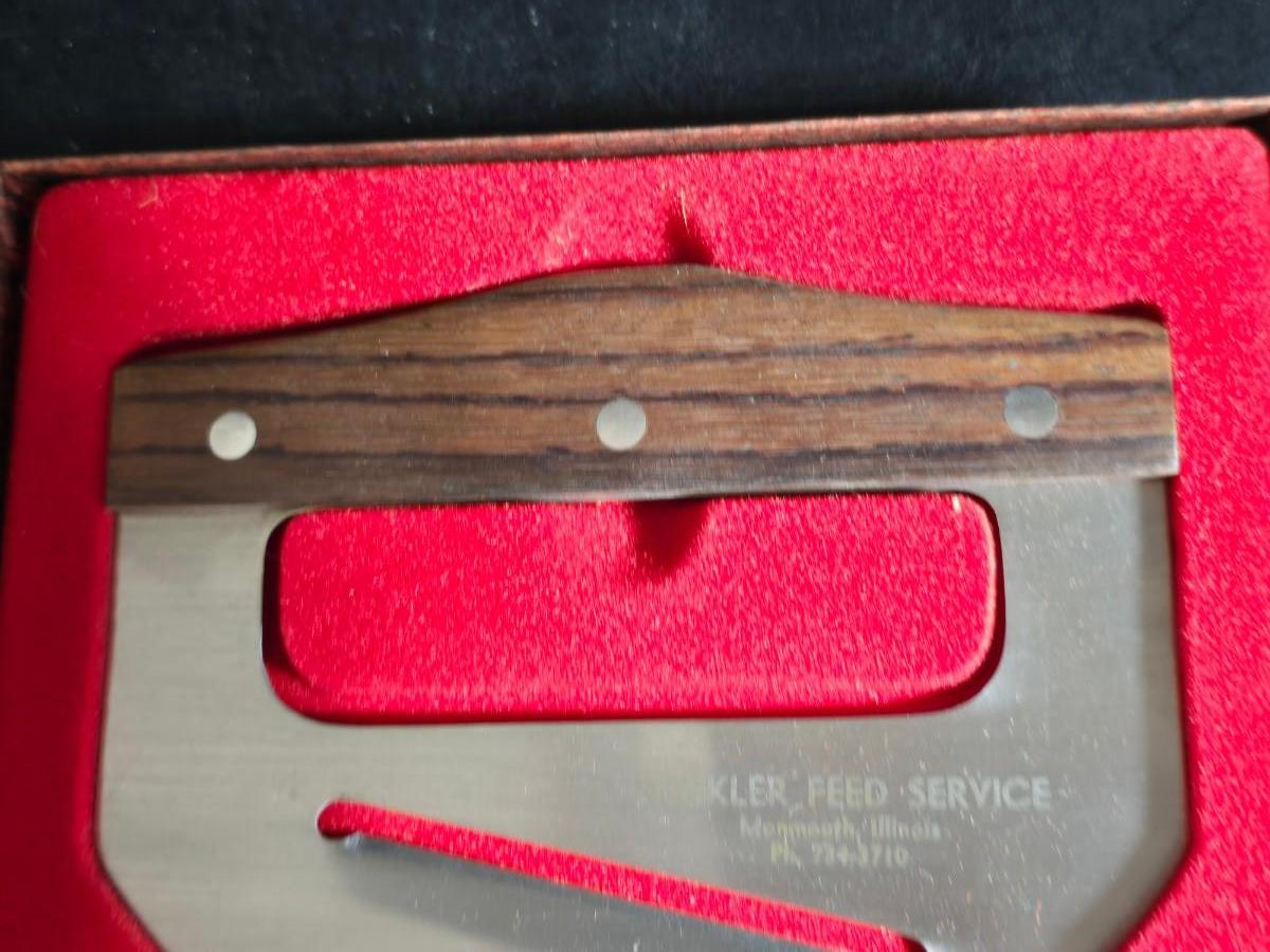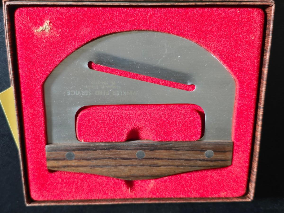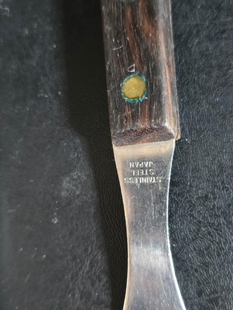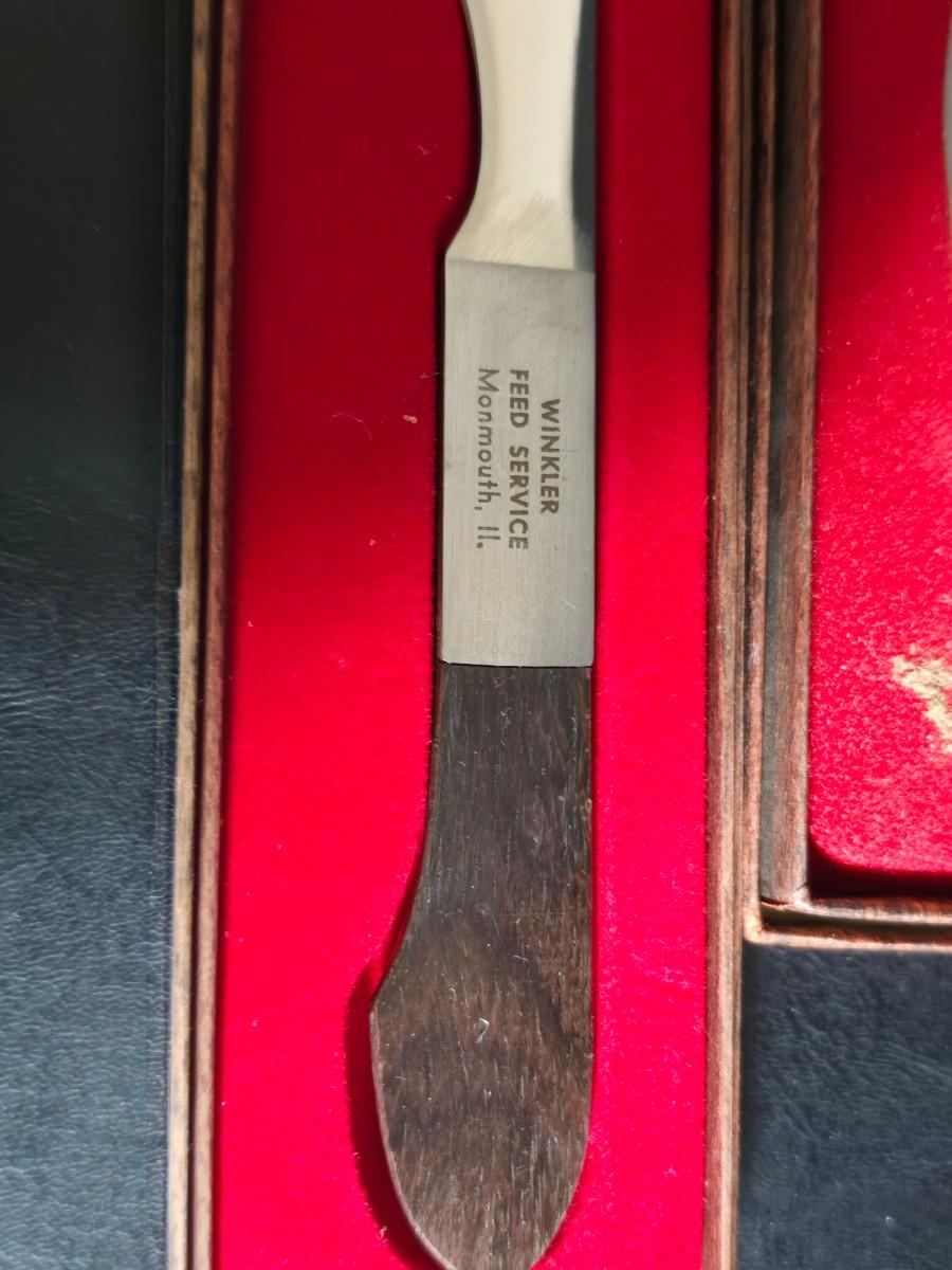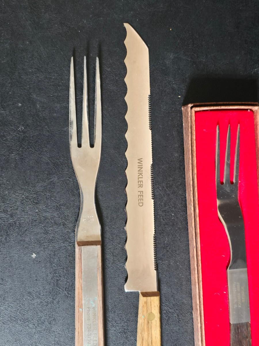 Winkler feed service utensils - Ulu knife - Turning fork - Carving set and a large scoop spoon all with wooden handles