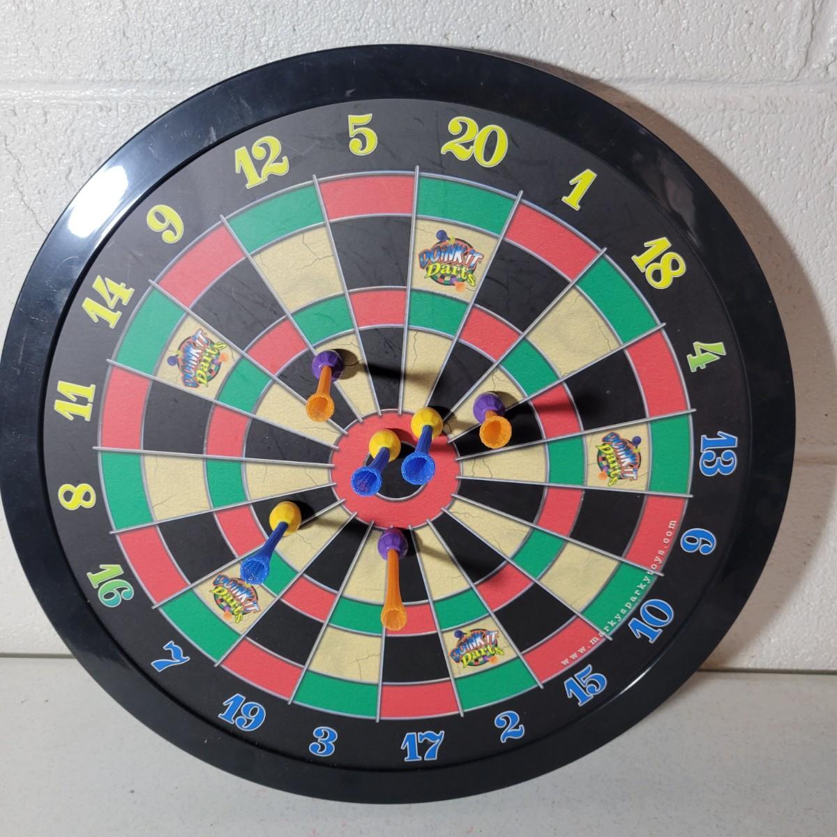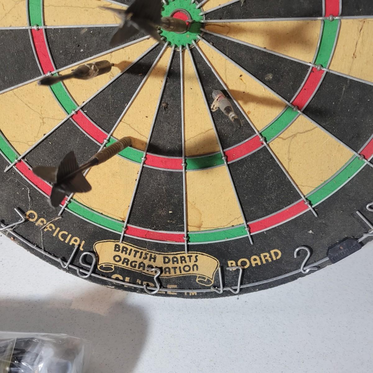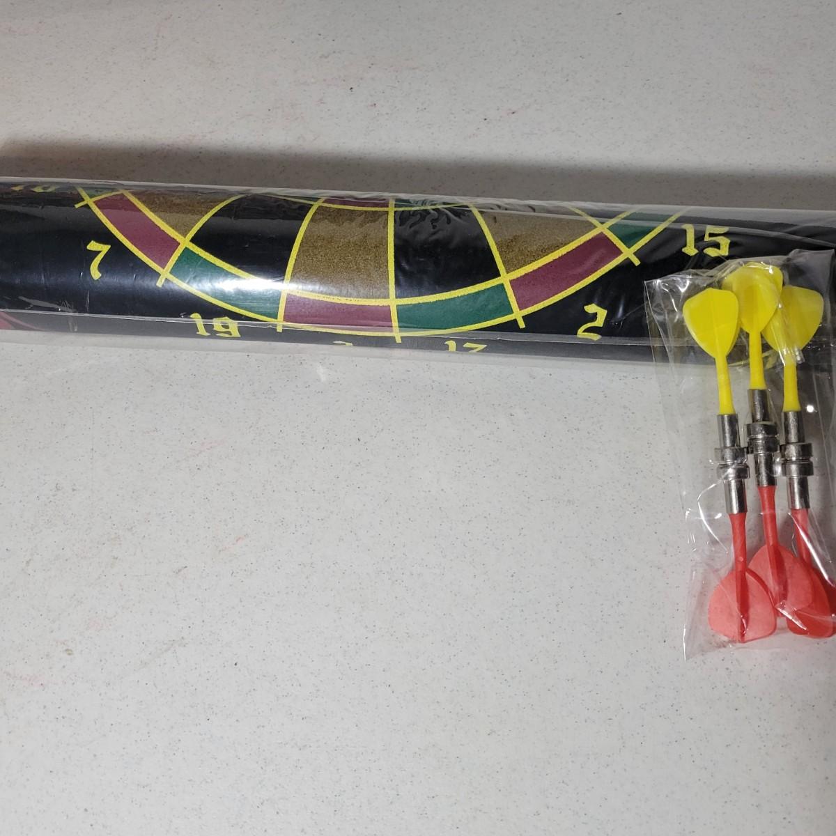 Three dart boards in good to excellent condition. Included is a Winmaú regulation dart board with four darts Included. Two of which are missing their flights. Also includes two magnetic boards and magnetic darts in excellent condition. One board is brand new and rolls up for convenience. Winmaú board measures approximately 18" x 2" Local pickup only