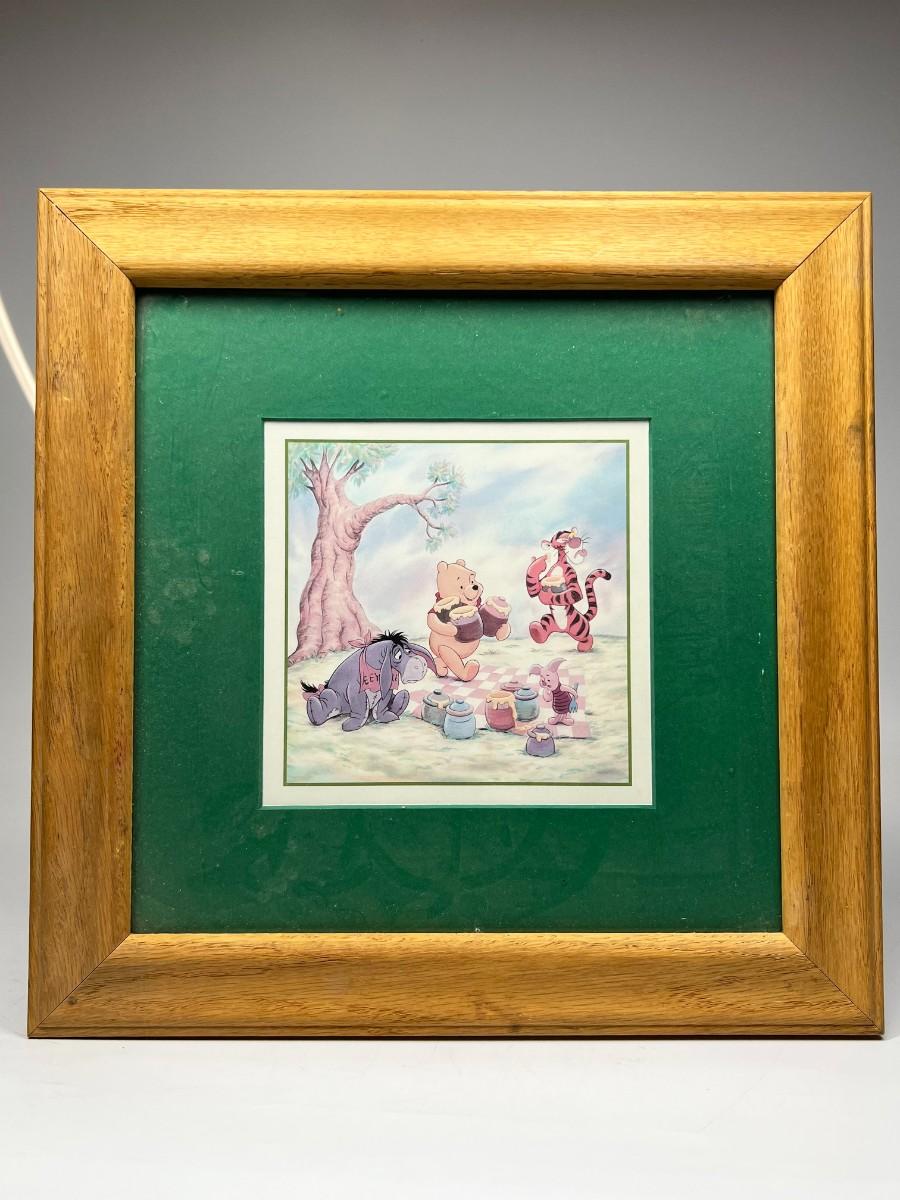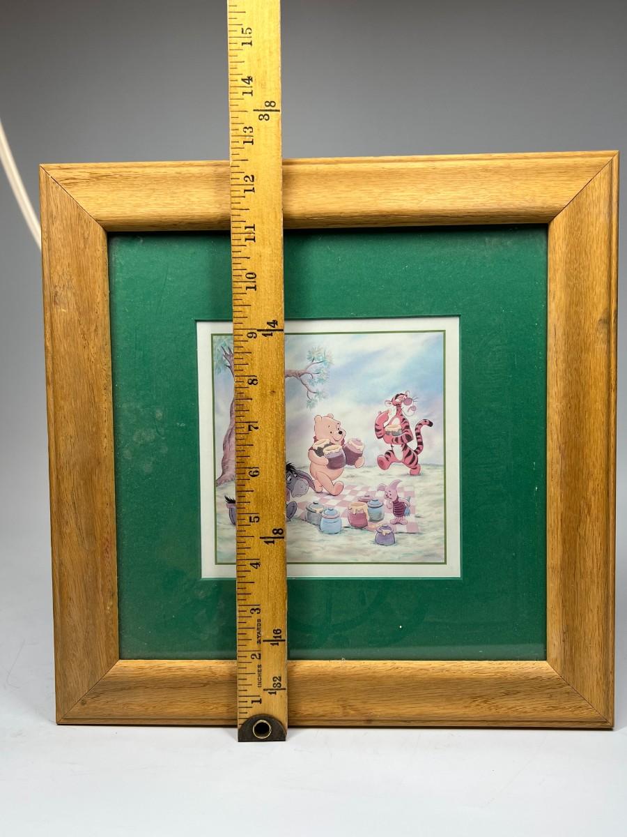 Winnie the Pooh & Friends Picnic Decorative Framed Image, there is no significant damage to the frame or protective glass and is in good displayable condition. Check pictures for more details and for sizing.