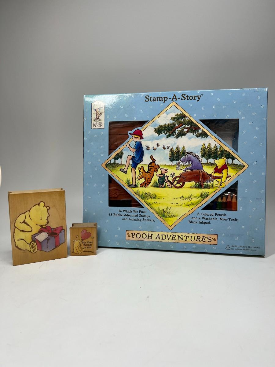 Winnie the Pooh Stamp A Story Arts & Crafts Stamp Collection Box Set, there is no significant damage to the stamps or the set and is in good useable condition. Check pictures for more details and for sizing.