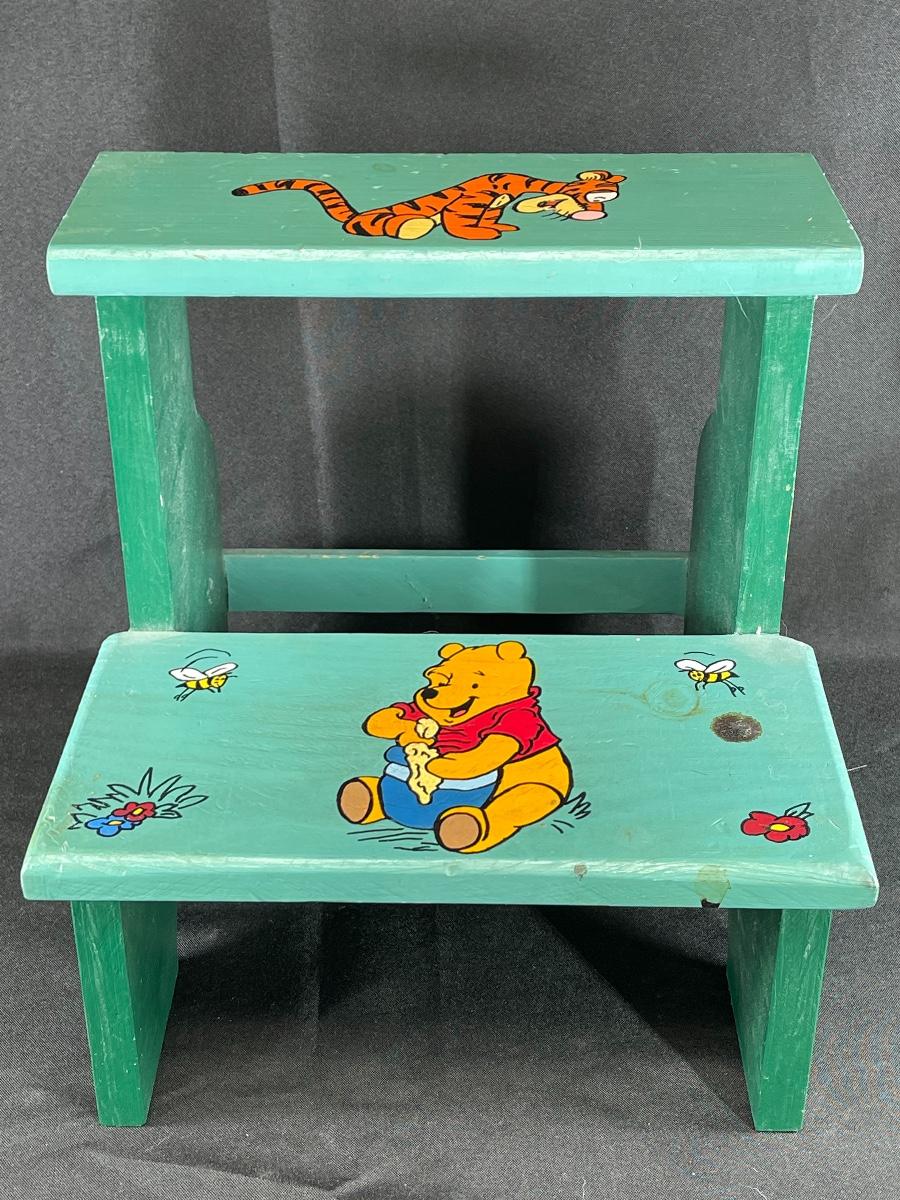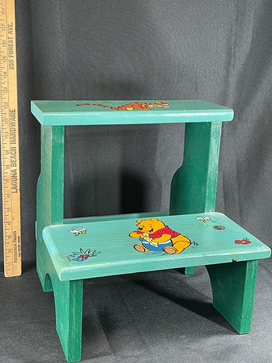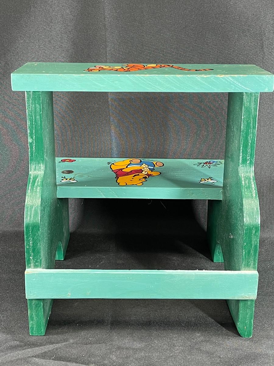 Hand painted step-stool. In good condition. 13” high, 12” deep, 12” wide. Solid wood, sturdy.