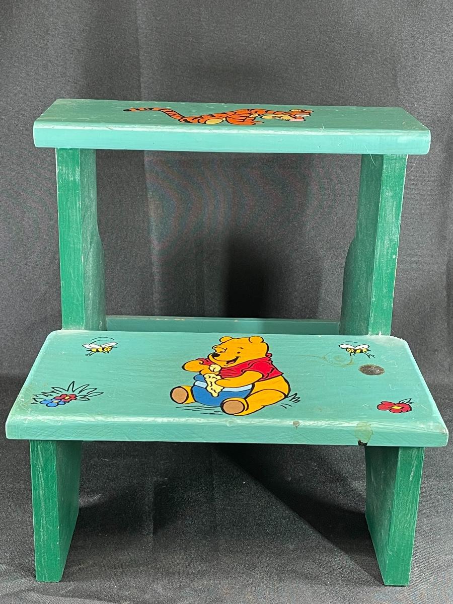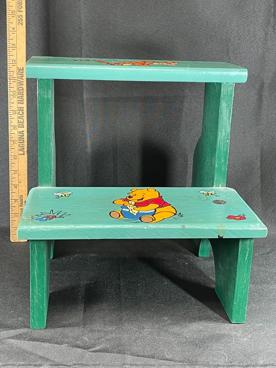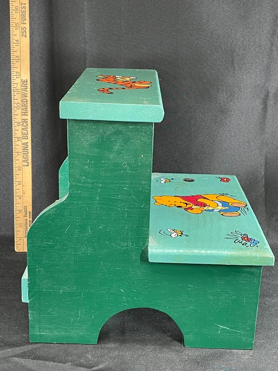 Hand painted step-stool. In good condition. 13” high, 12” deep, 12” wide. Solid wood, sturdy.