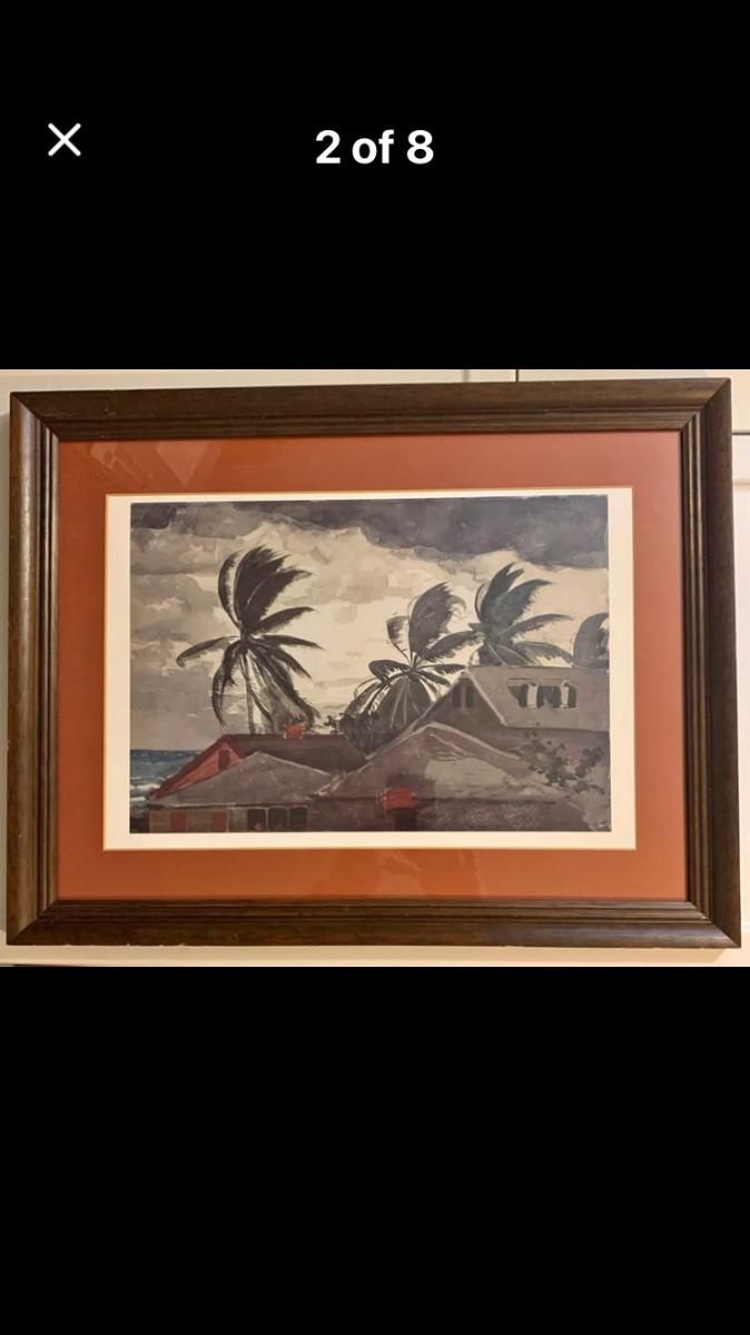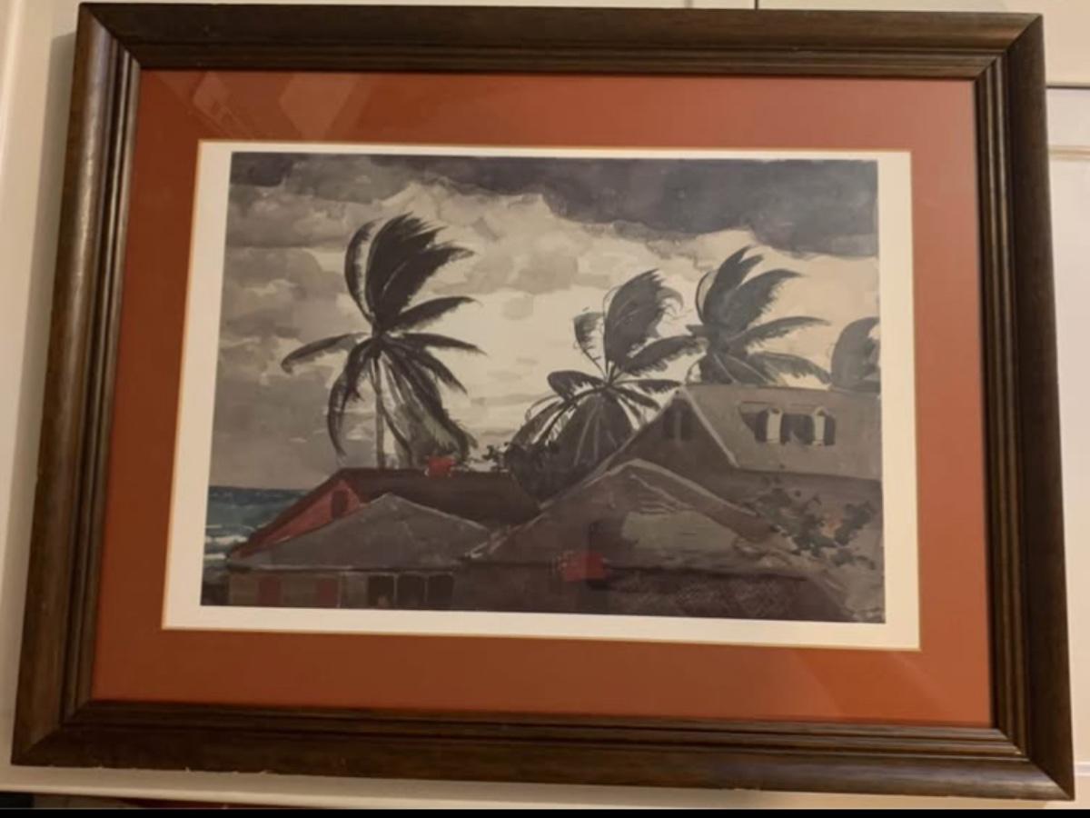 Framed print of “Hurricane, Bahamas” by Winslow Homer (American, 1836–1910), originally created in 1898.