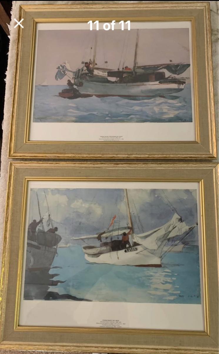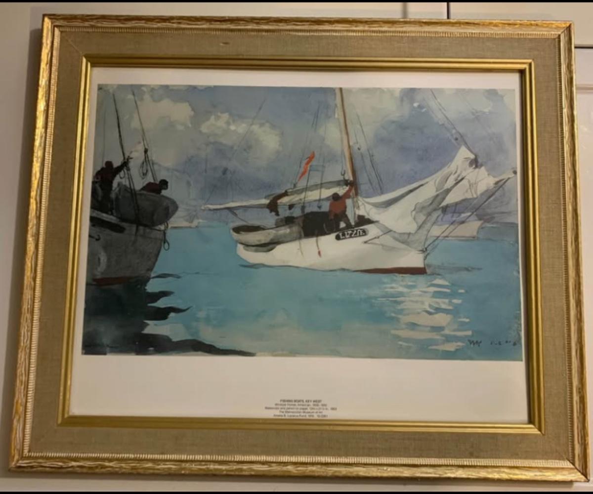 Winslow Homer Key West nautical maritime coastal art framed prints museum reproduction Met Museum fishing boats sailing seascape vintage wall art pair set American art