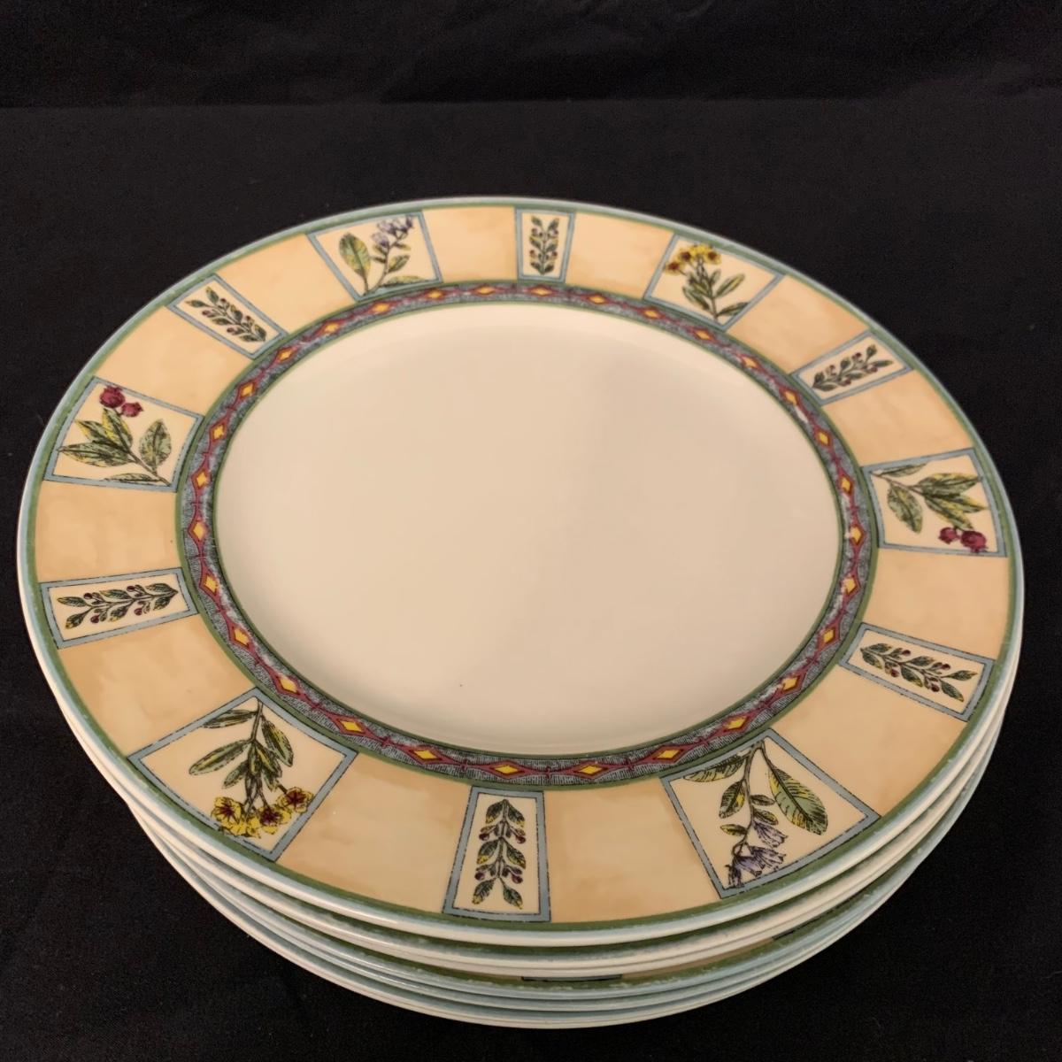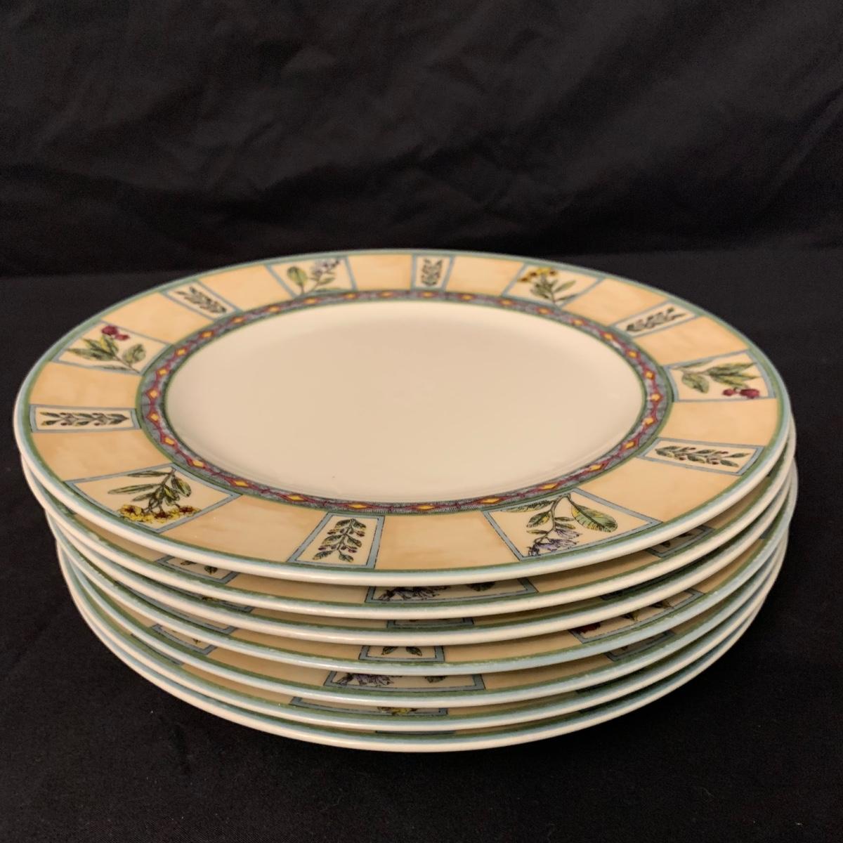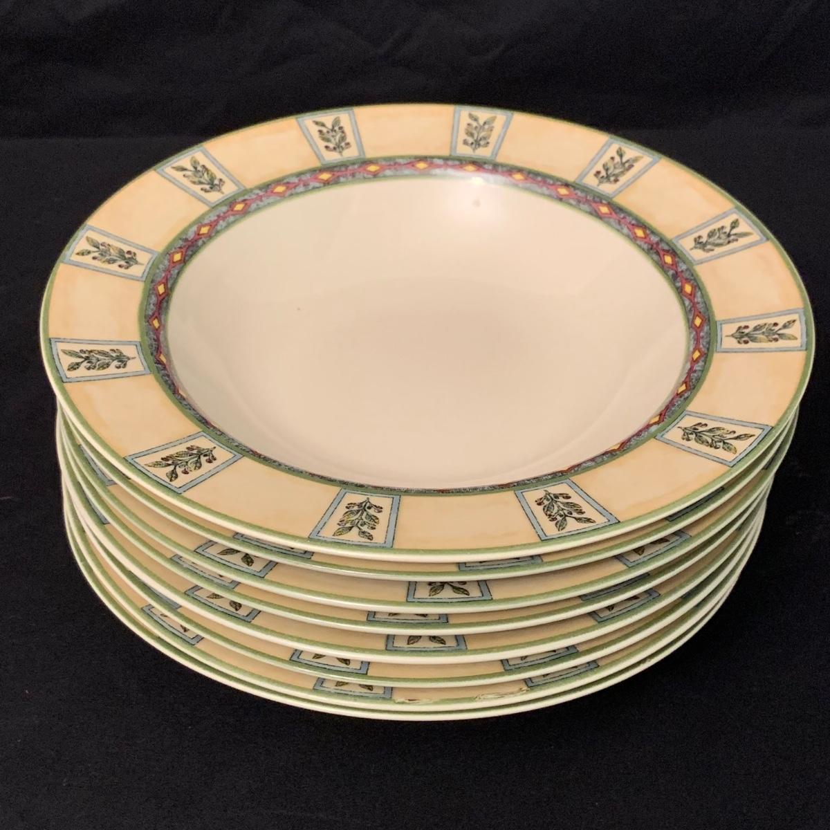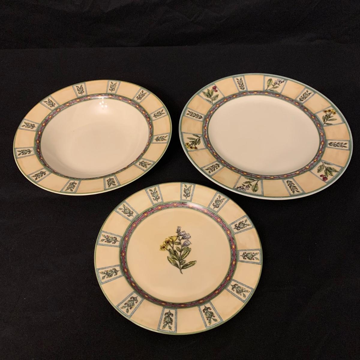 Winslow Manor Coventry set of genuine stoneware plates and bowls. Set includes seven 10.75”D plates, eight 8.25”D plates, and eight 9.25”D bowls. The dishes feature a floral decor. The larger plates and the bowls have white centers with a very light beige colored background around the border. The smaller plates have the light beige color in the center and around the border, and feature flowers in the center of the dish. All items are in good condition, though some of the design has faded/worn off over the years (see photos). Shipping available.