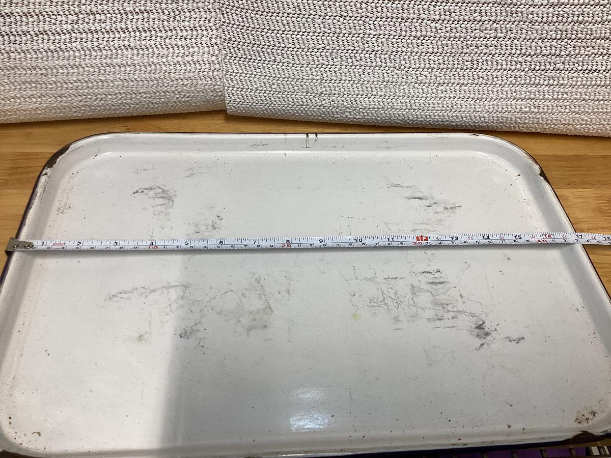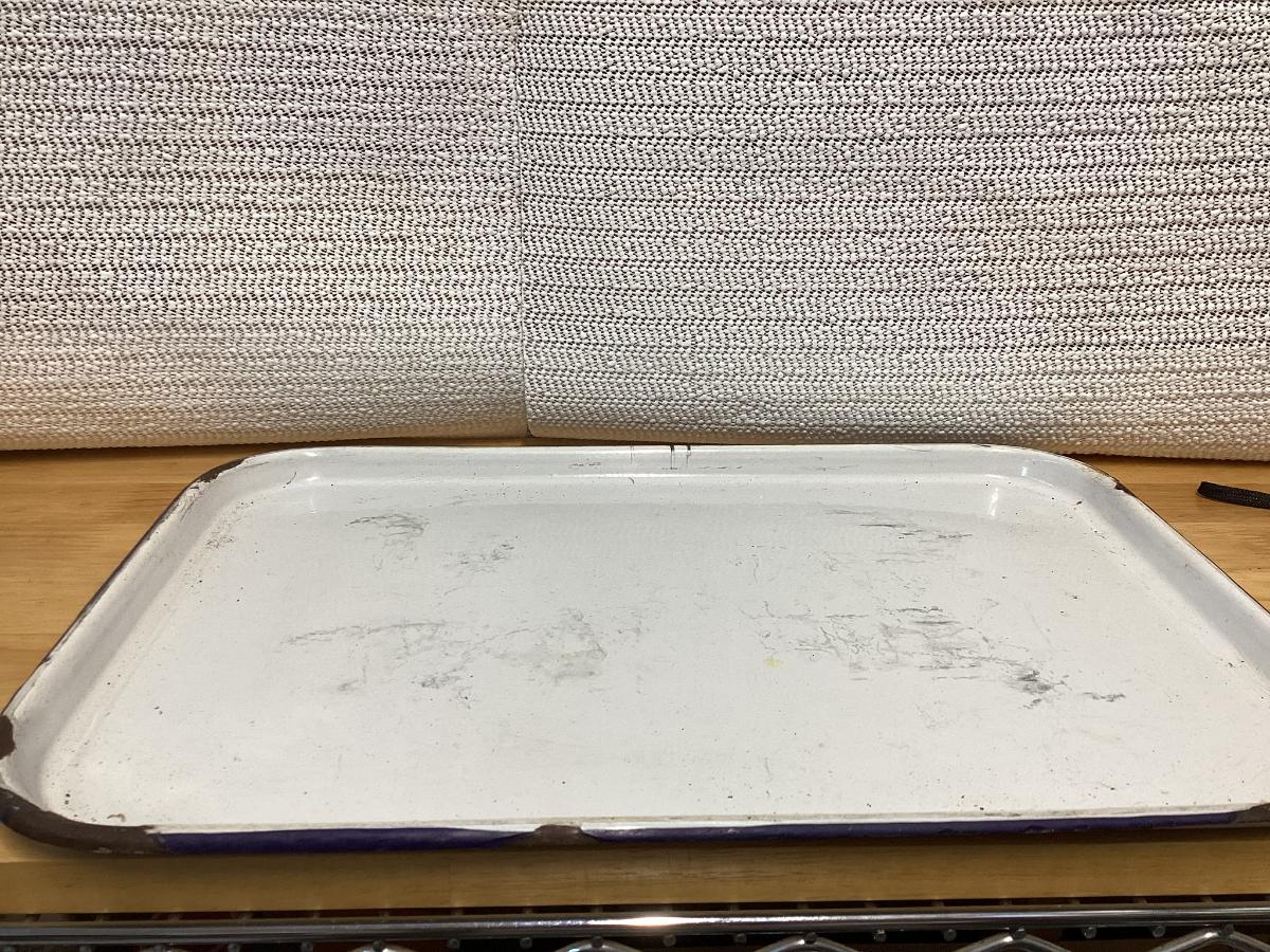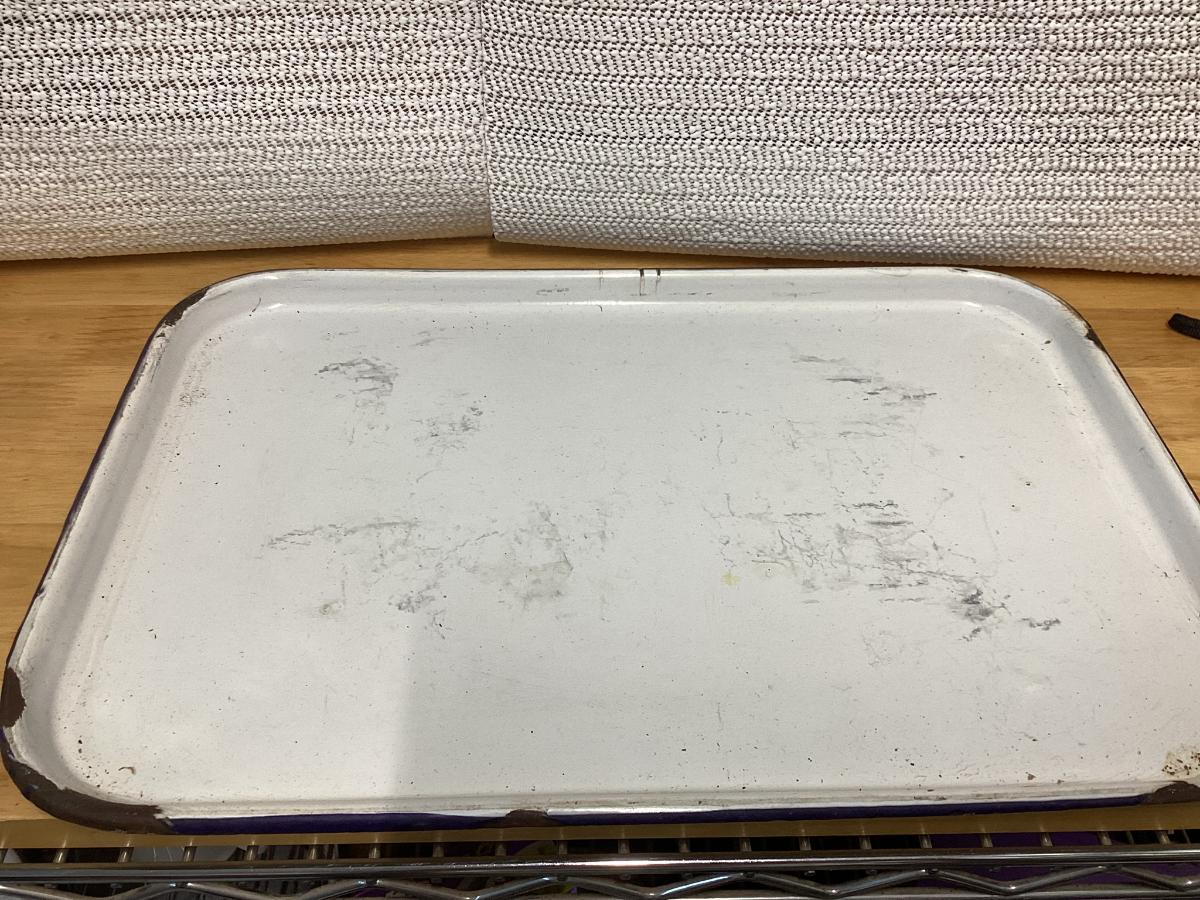 vintage white enamelware cooking tray