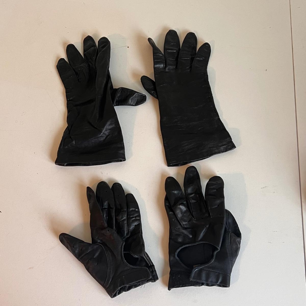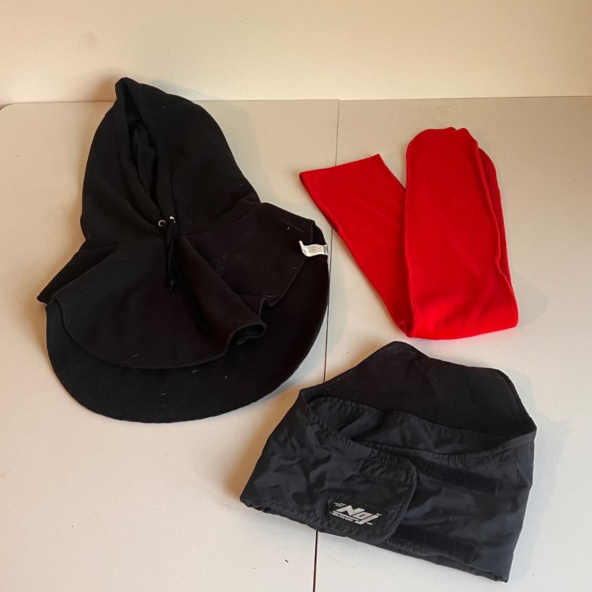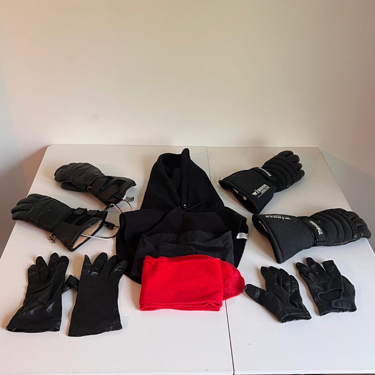 This lot includes a handful of cold weather motorcycle riding accessories like gloves and fleece scarves/headwear. All of the gloves are leather or have leather accents and have an average fit of women's medium/men's XS. The Velcro fleece head warmer is tagged with “NOJ.” Please see photos for details. Shipping available