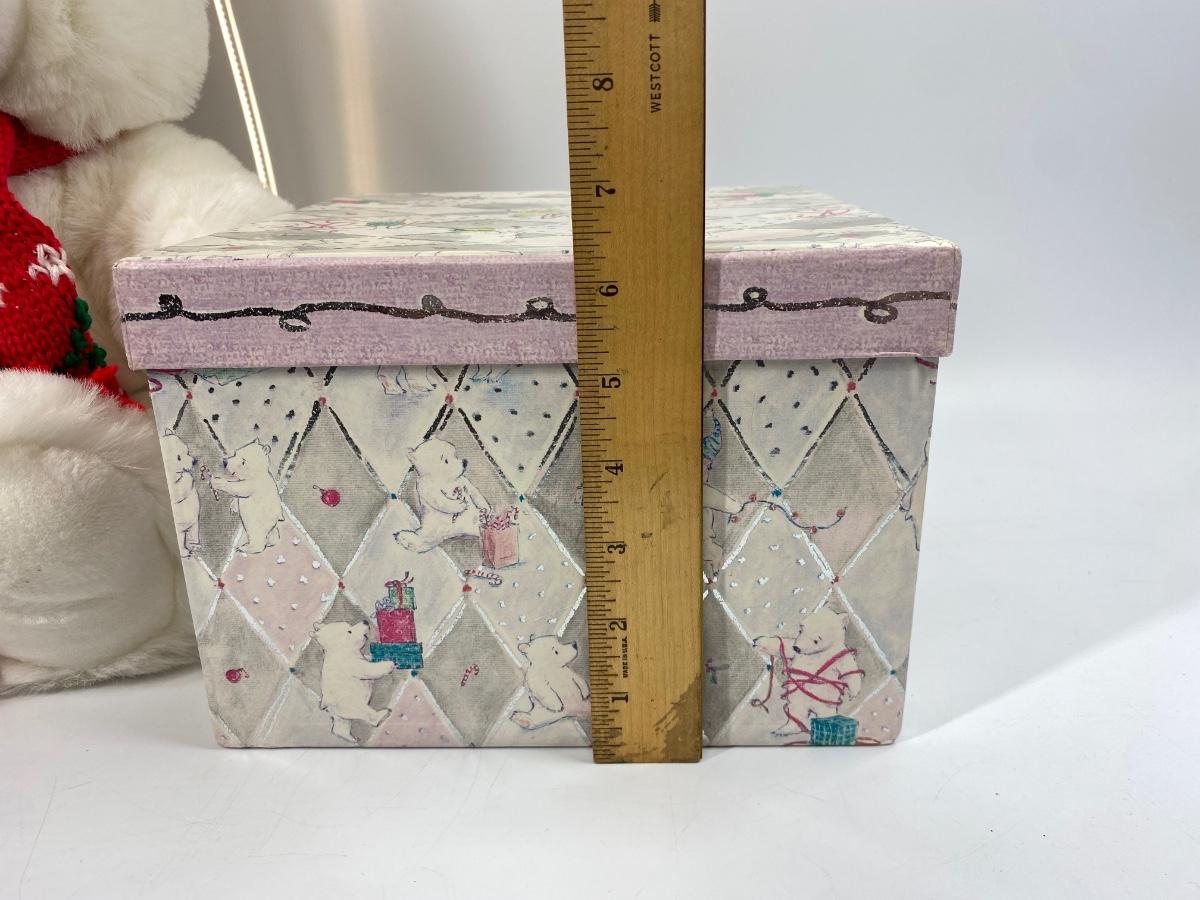 Winter Holiday Polar Bear Plush Stuffed Animal with Gift Storage Box