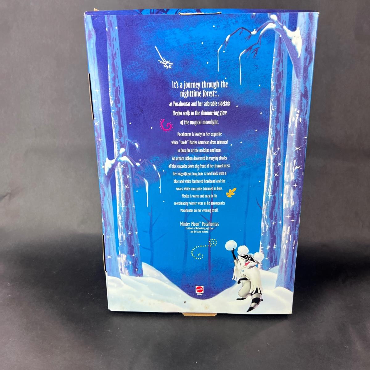Pocahontas and Meeko are all dressed up for the Winter Moon. This doll was produced in partnership with Disney and Mattel in 1999. Doll and Meeko have not been out of the box. Box does have some wear. **|** Please see photos for details and condition. ::: Shipping is available on this lot. If you require shipping you must let us know at the close of the auction. We will coordinate with you after the item has been won. Shipping fees will include insurance up to or exceeding the value of all items being mailed. If you have any questions regarding this lot please contact the auctioneer either via this website, by direct email or by phone. PICK UP TIMES and other important information can be found in the TERMS and DESCRIPTION of the auction. Please take a look for pertinent information. Thanks!