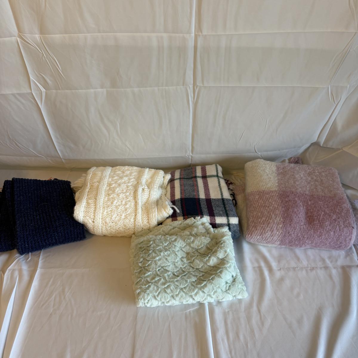 This lot contains a lovely collection of cold weather scarves, hats and gloves for a total of 15 items. Included is five scarves, three pairs of gloves and seven hats. See pictures for design and styles. Shipping available.