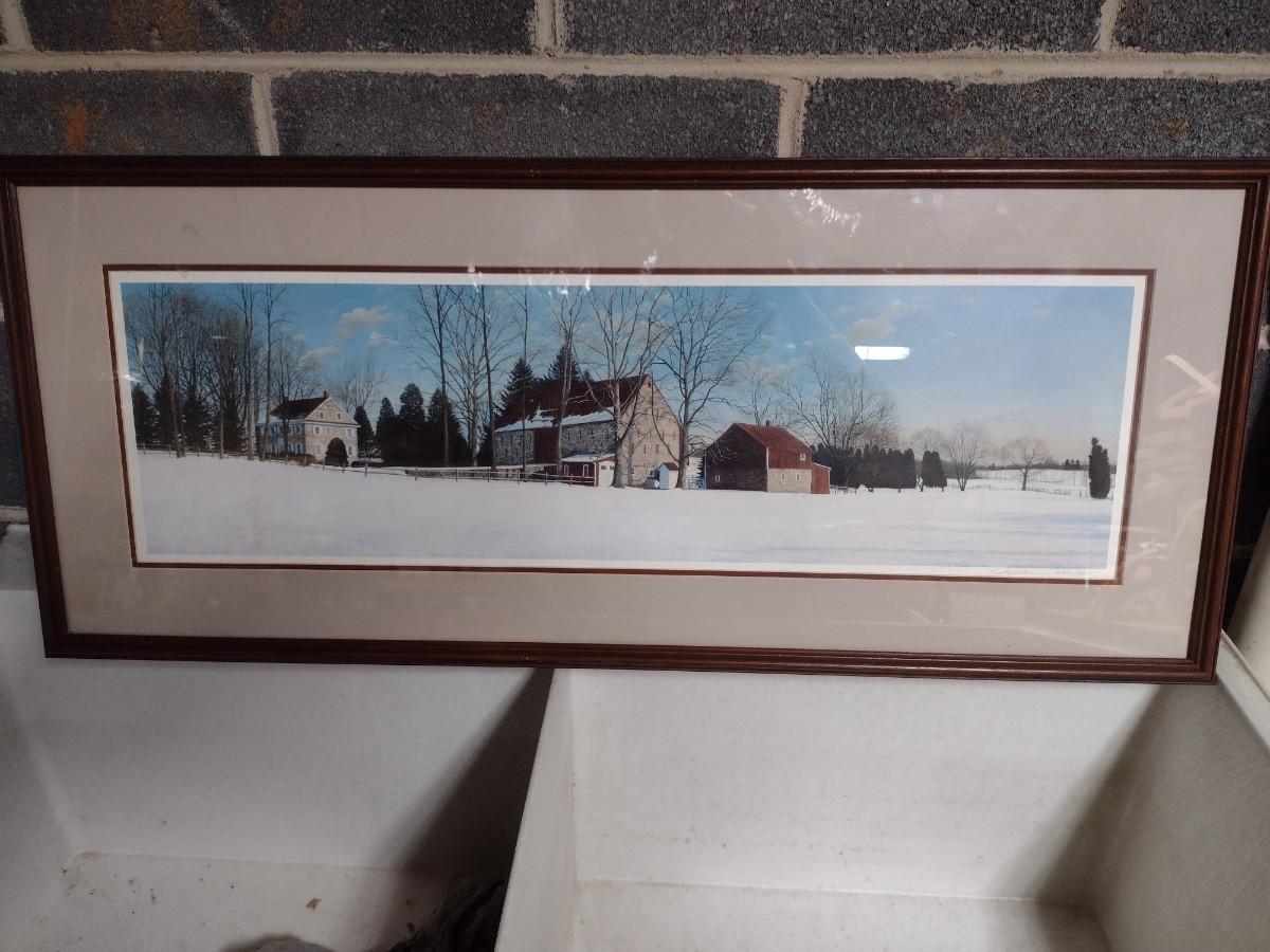 Winter Scene Art Print Framed Under Glass- Signed and Numbered