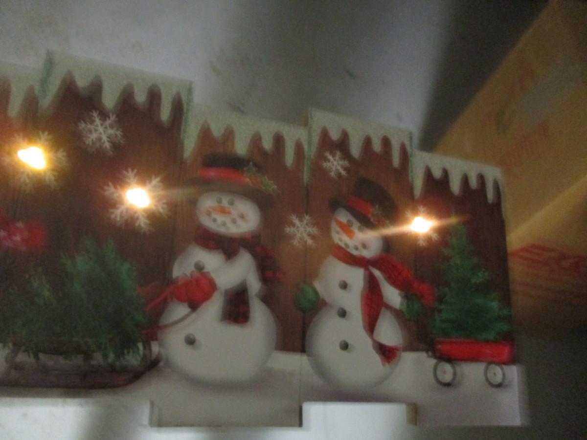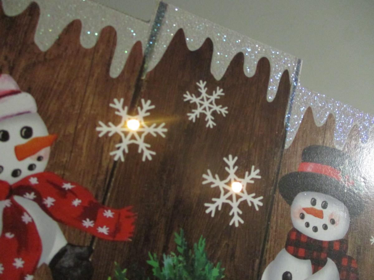 Winter Snowmen Theme Stars Light Up Wooden Panel