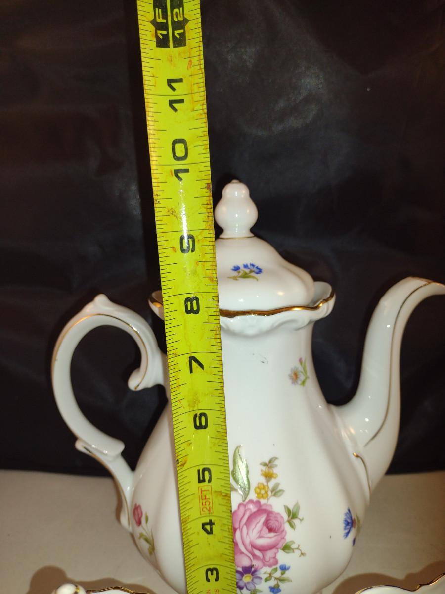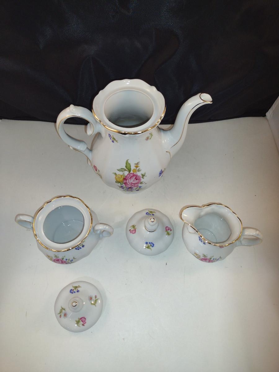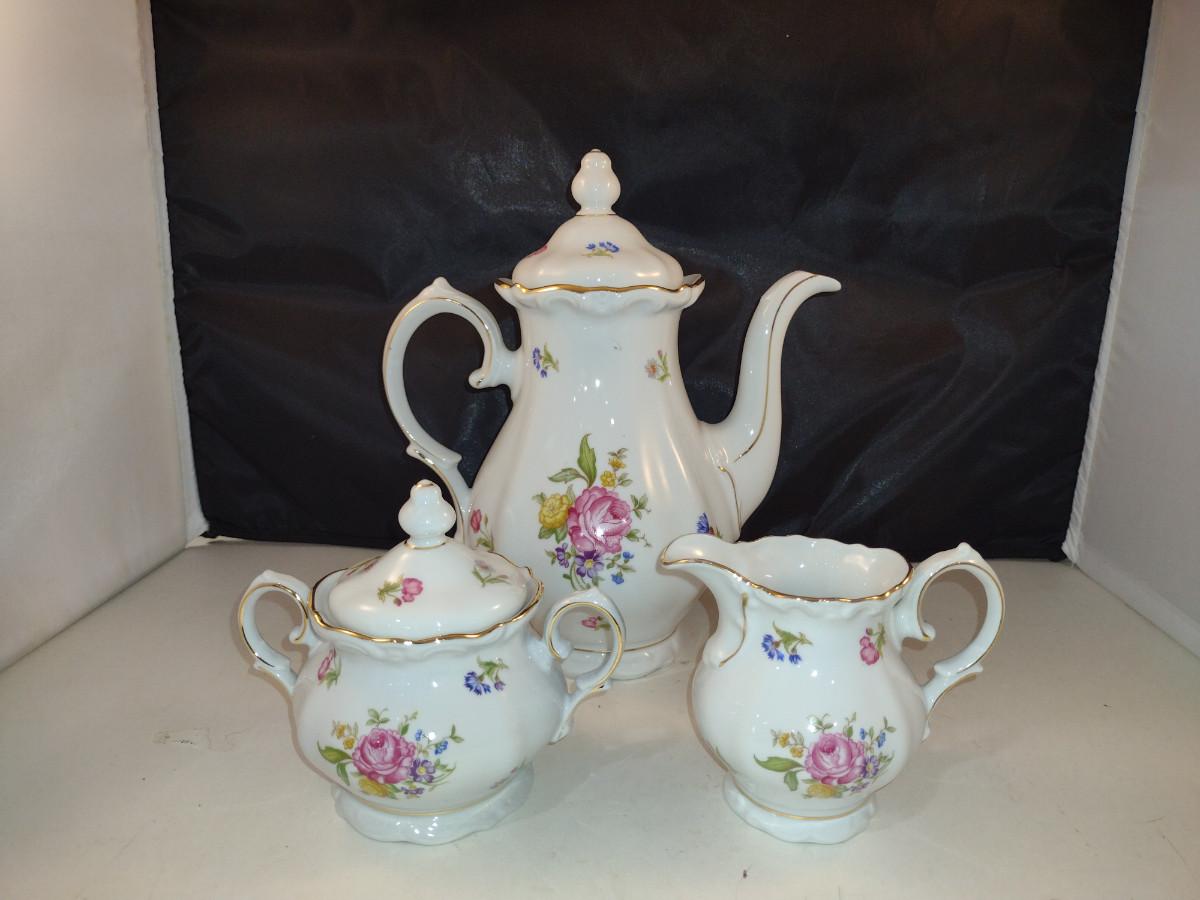 Winterling Bavaria Germany Coffee Pot with Creamer and Covered Sugar Bowl- Mignon Pattern. Items are in used condition and may have occasional chip.