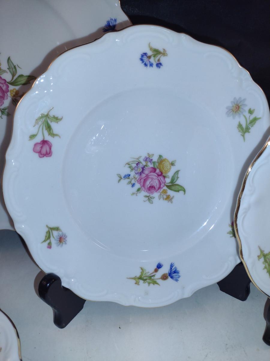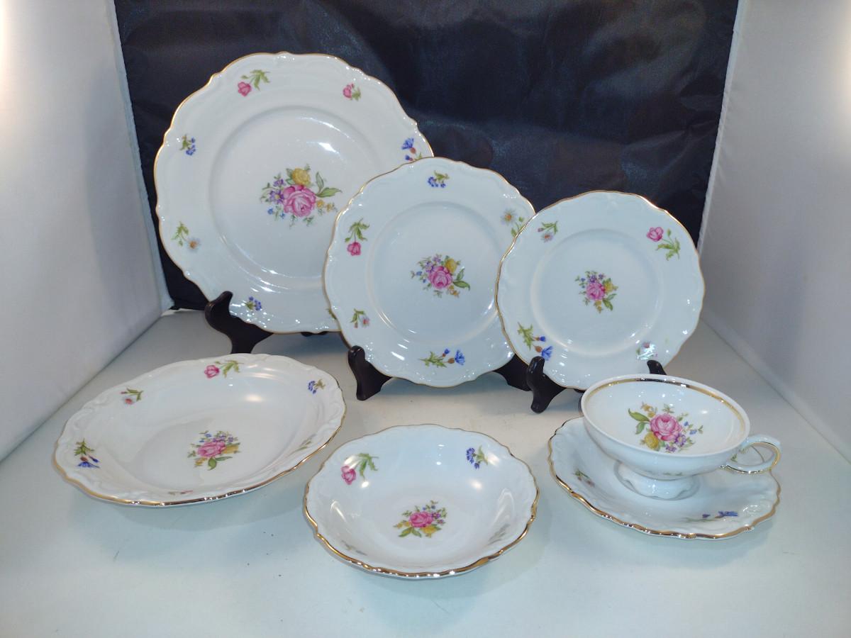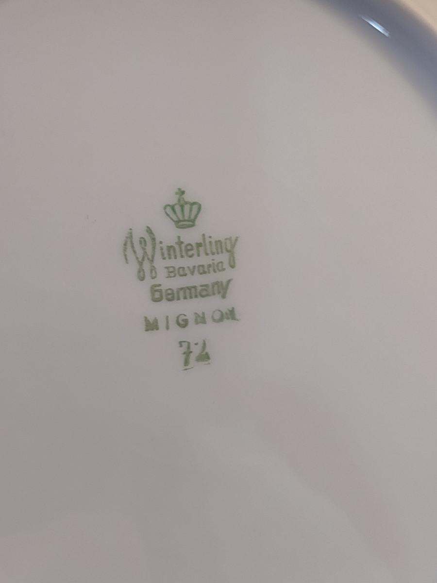 Winterling Bavaria Germany Porcelain Dinnerware- Mignon Pattern-. Includes: dinner plate- 11, salad plate- 12, bread/dessert plate- 12, soup bowl- 12, berry bowl- 12, cup- 11, saucer- 11. Items are in used condition and may have occasional chip.