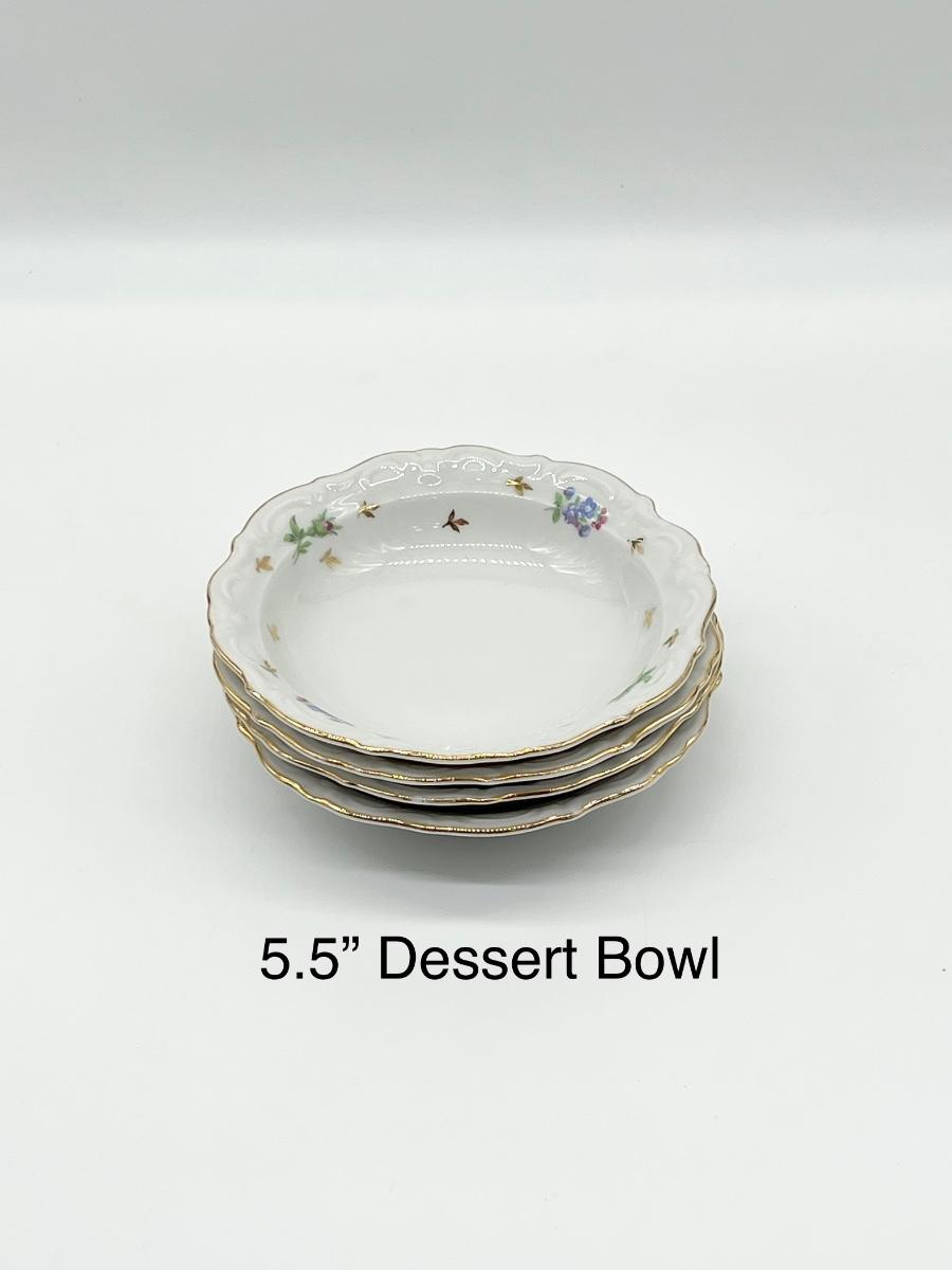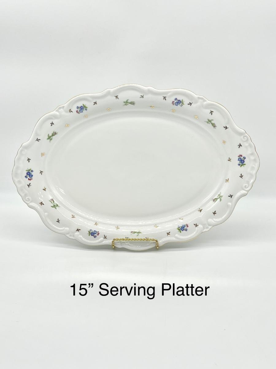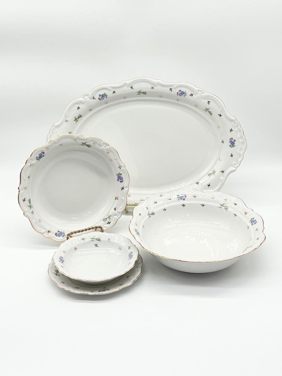 Set includes: 4 soup bowls, 4 bread butter plates, 4 dessert bowls, 1 serving platter, 1 serving bowl