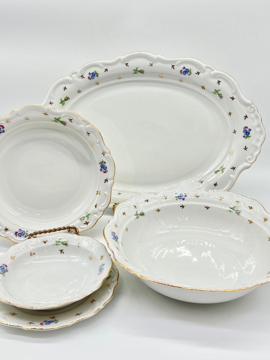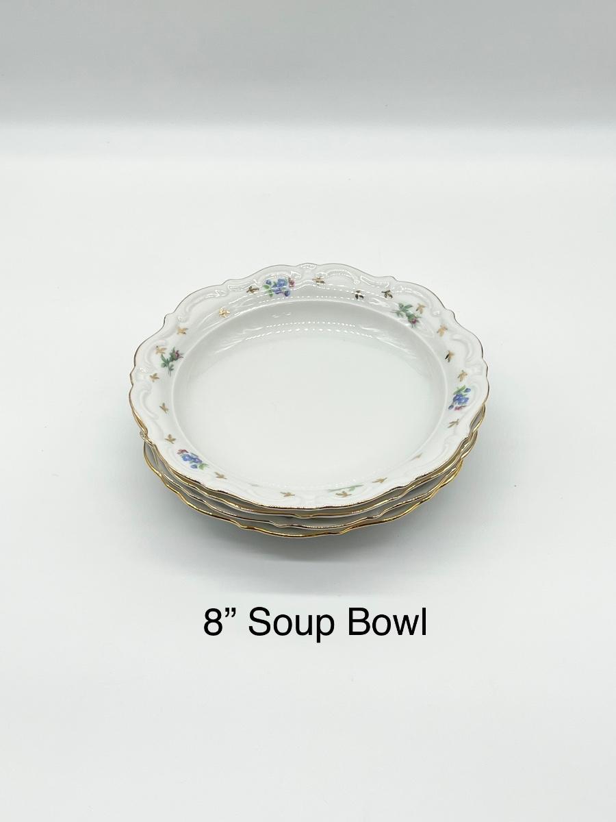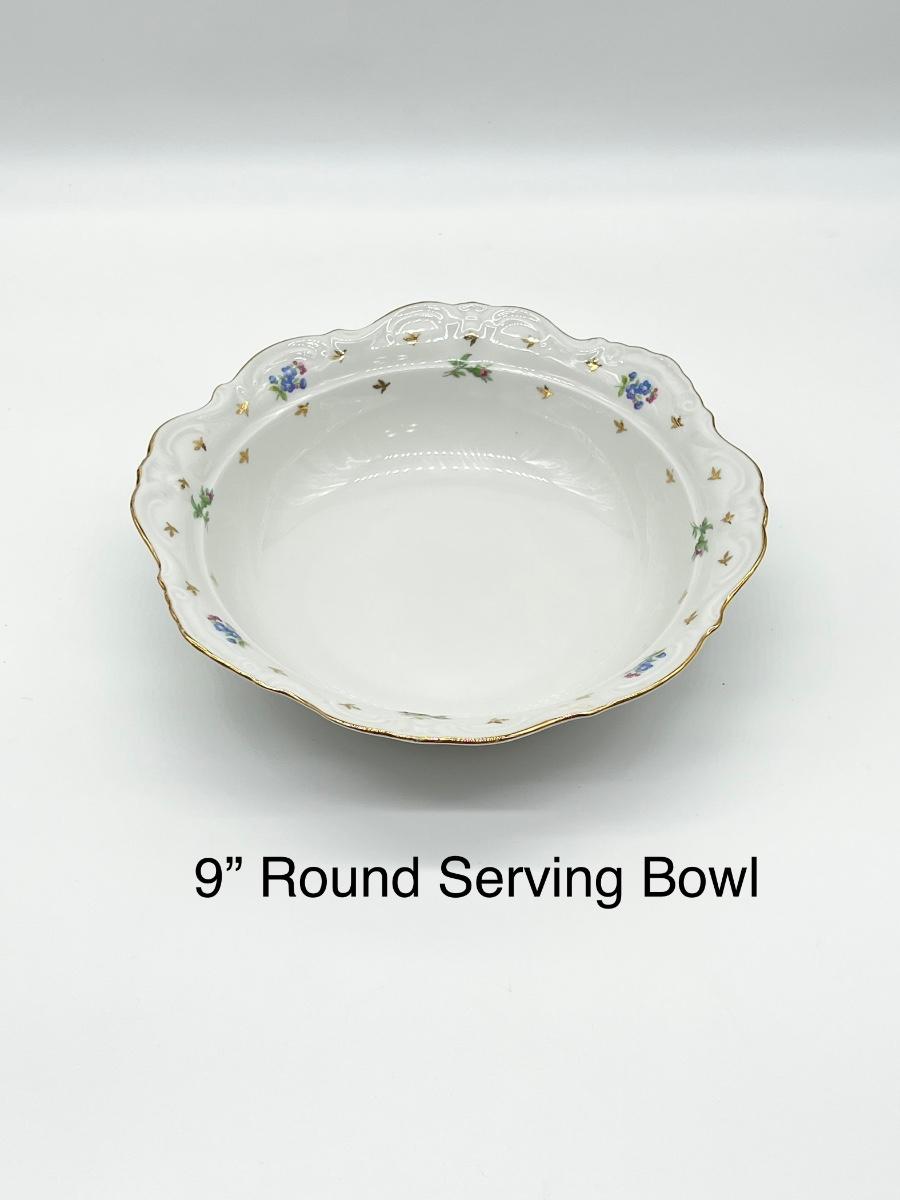 Set includes: 4 soup bowls, 4 bread butter plates, 4 dessert bowls, 1 serving platter, 1 serving bowl