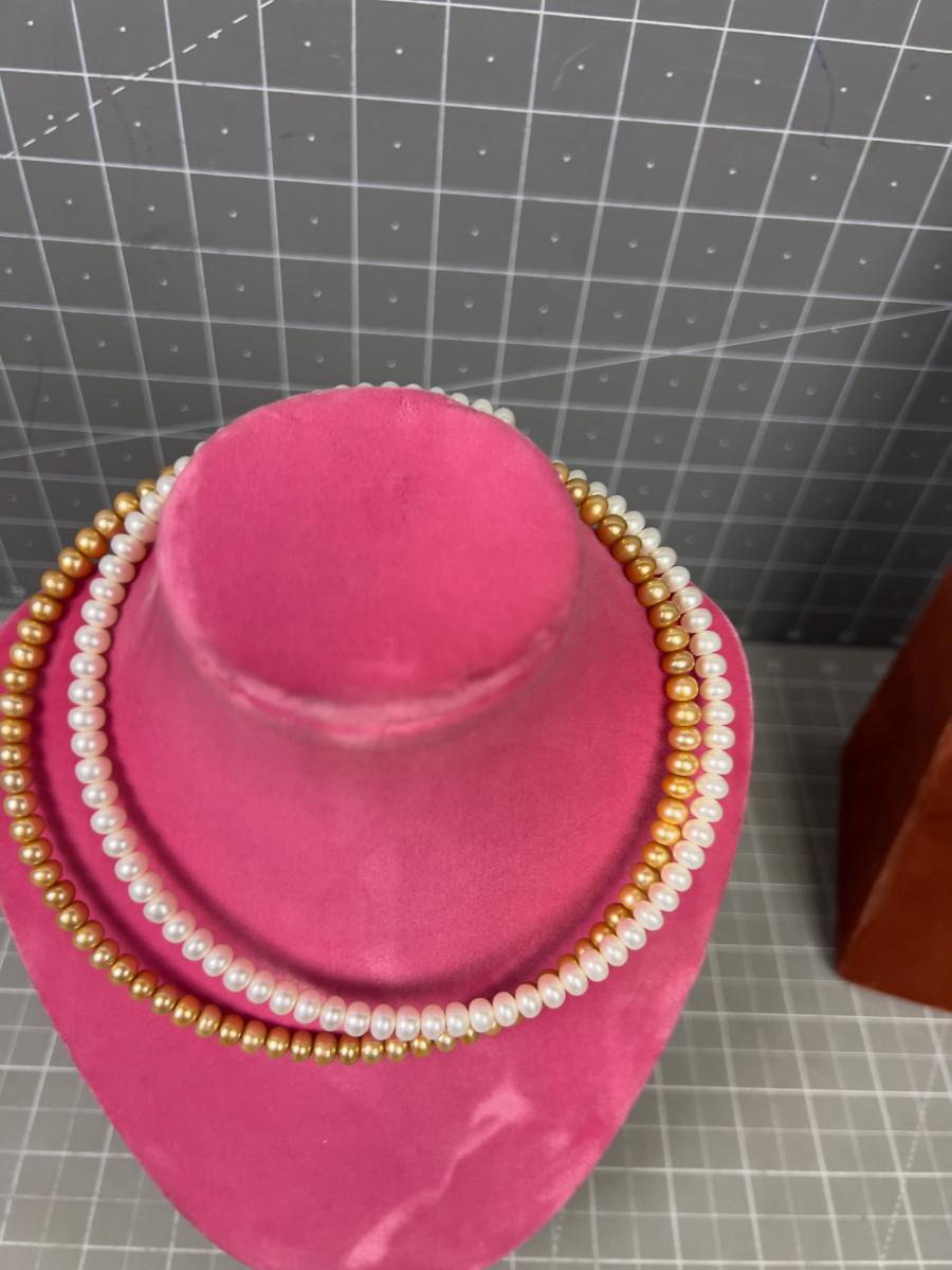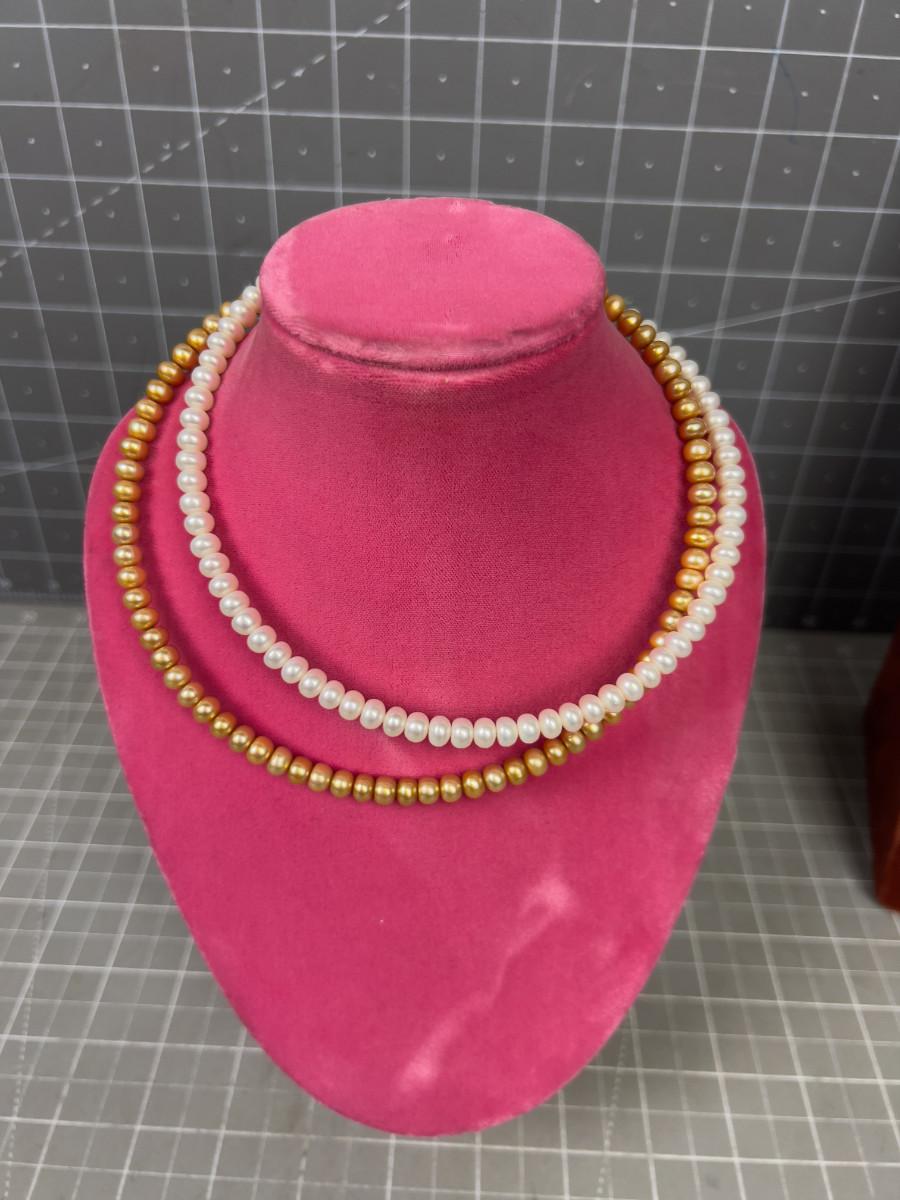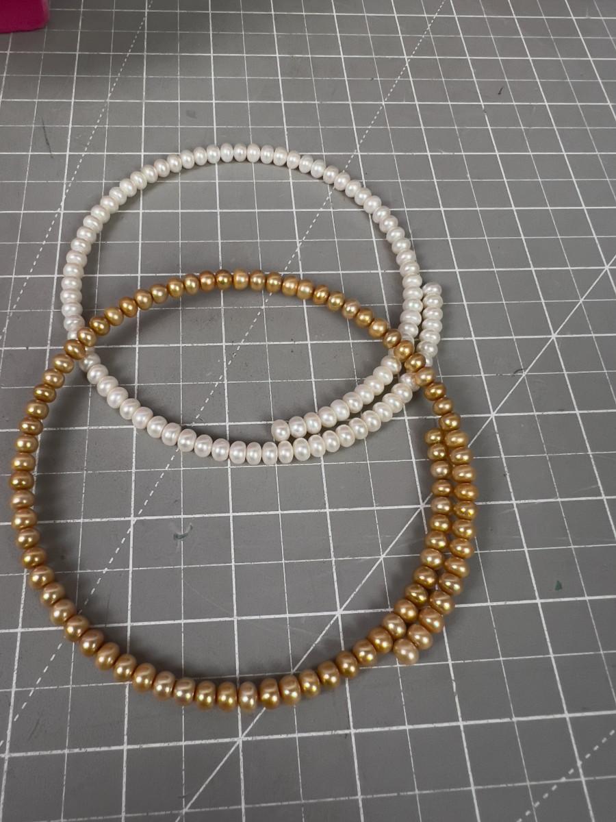 Wire Beaded CHOKERS Goldish and Whiteish Real Pearls