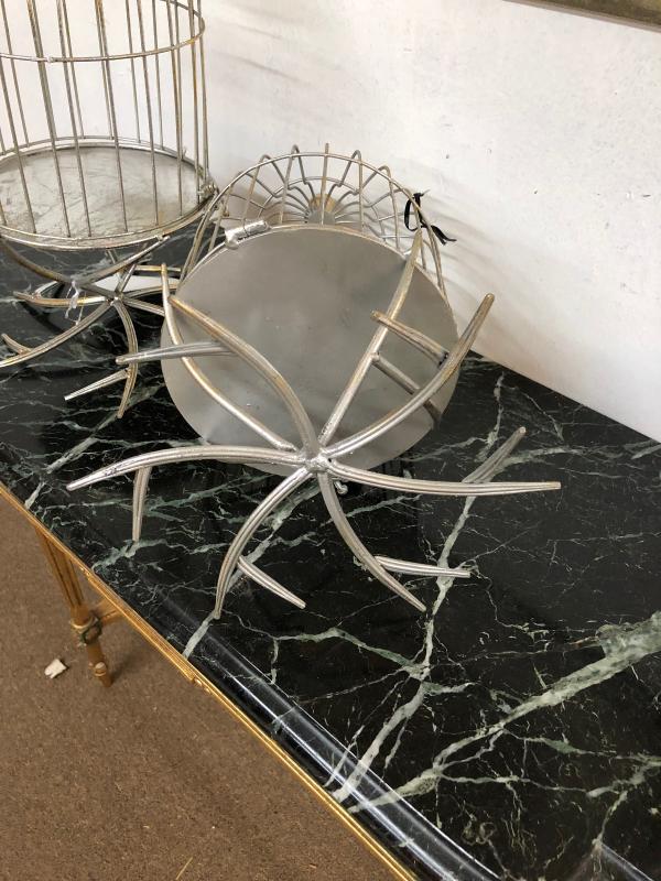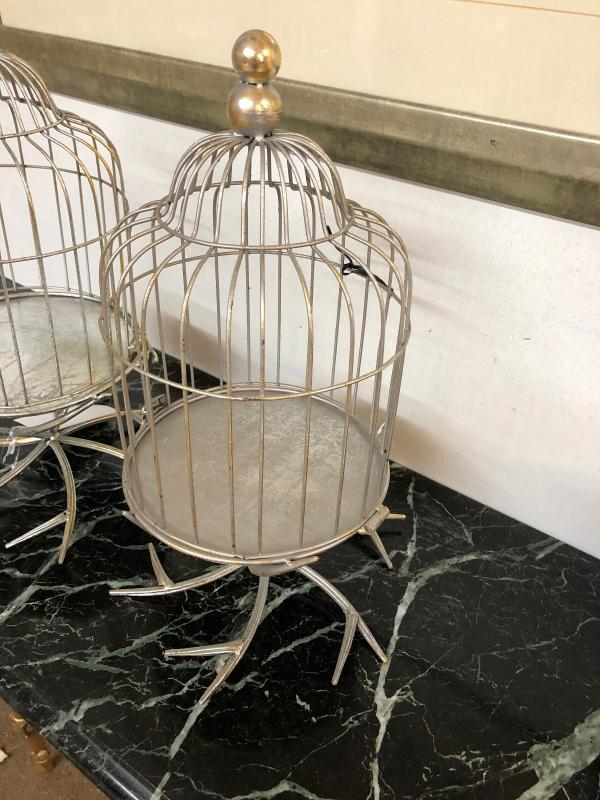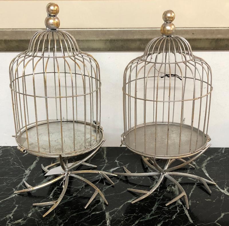 Pair of decorative wire bird cages in good condition. 16" tall.