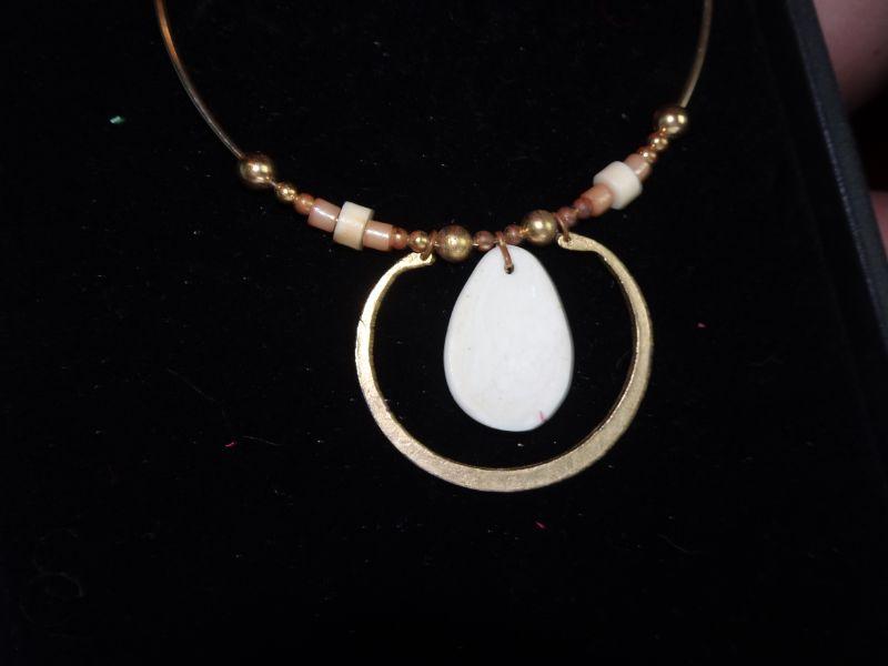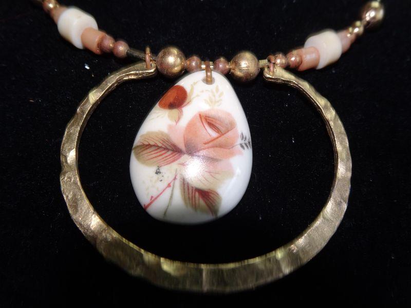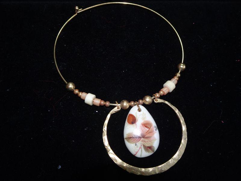 Wire Choker Necklace with Hand Painted Porcelain Rose Pendant