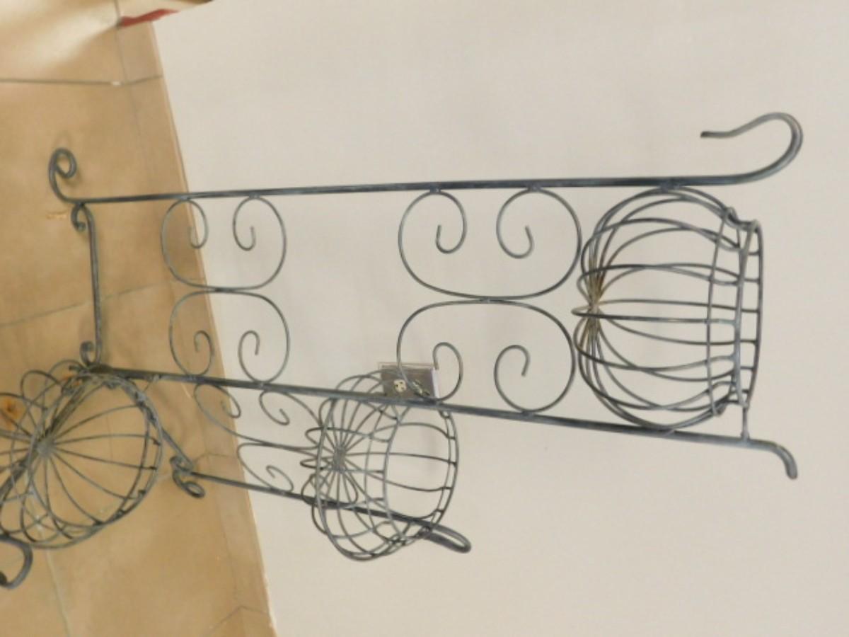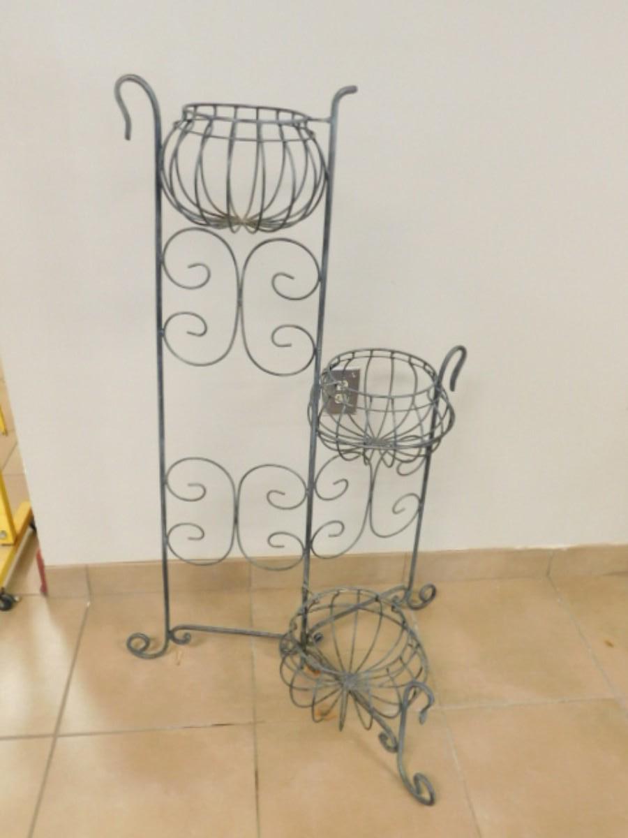 Wire Contemporary Design Triple Basket Plant Stand Choice A Expect some wear or scratches to finish. Shipping option available via freight or local mover at Buyer's expense. Buyer must have all shipping scheduled within the stated dates and times of pickup. Recommended local mover is Beaty Bros. Moving 828-201-2982