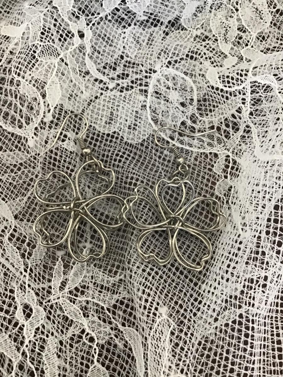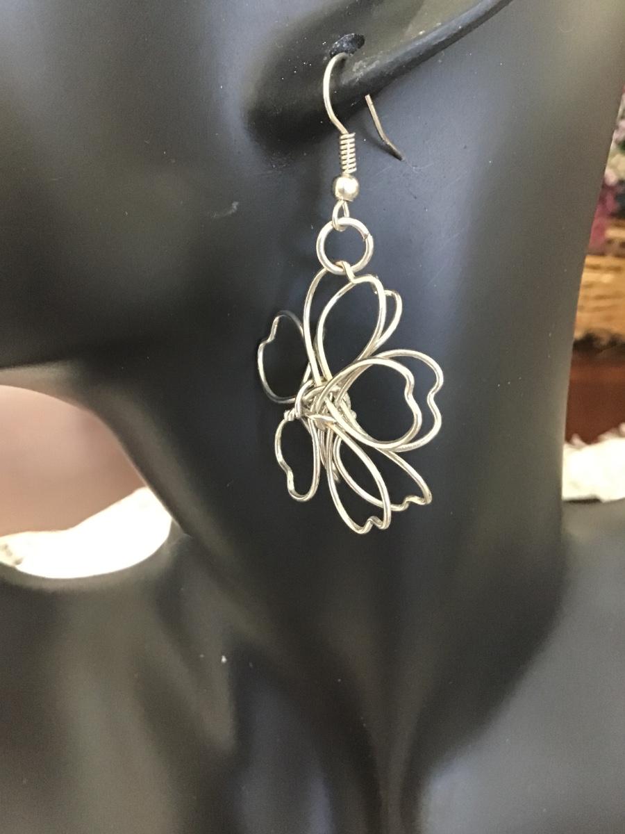Wire flower silver tone earrings