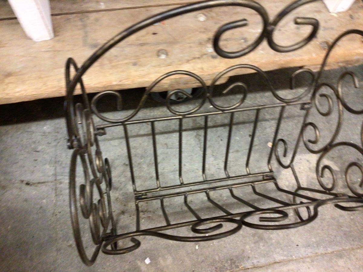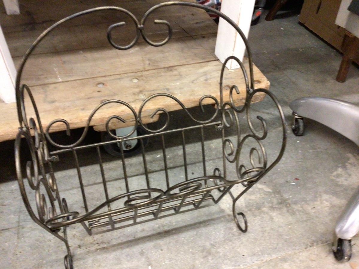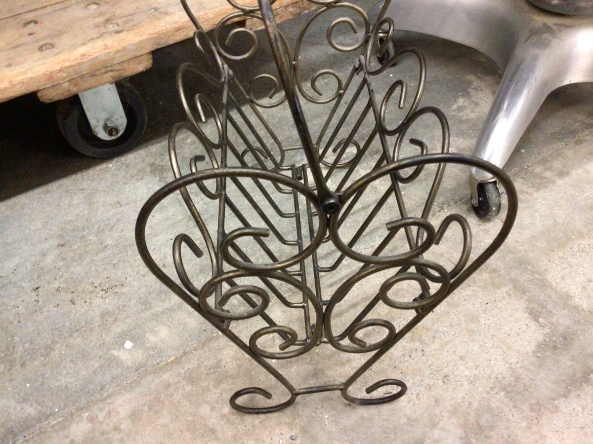 This is a great bronze metal wire magazine rack.