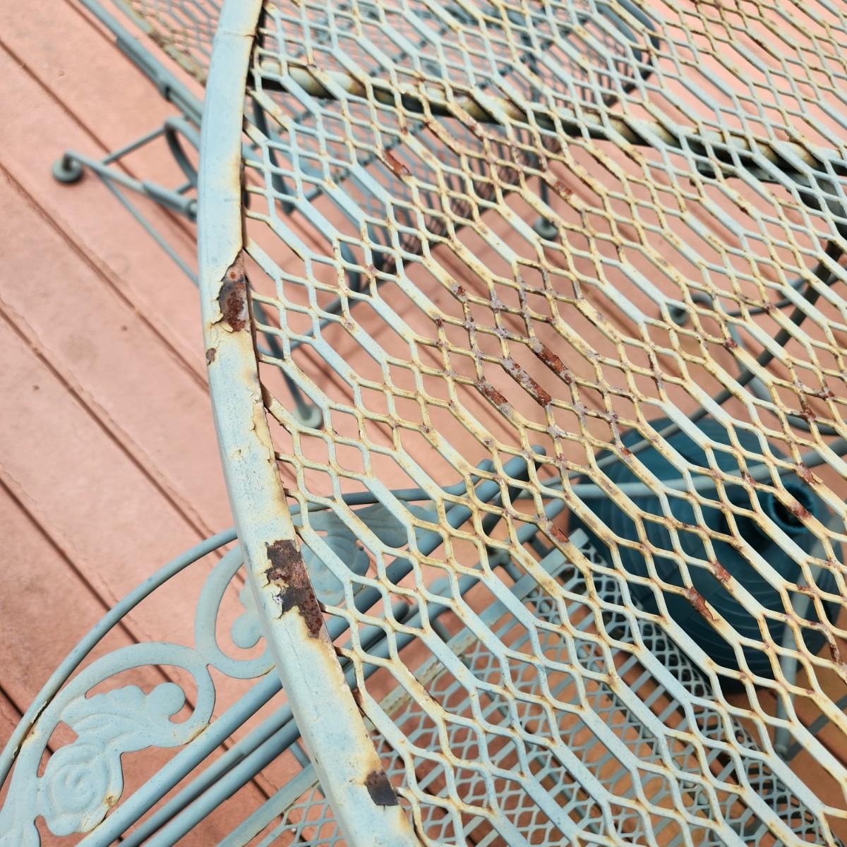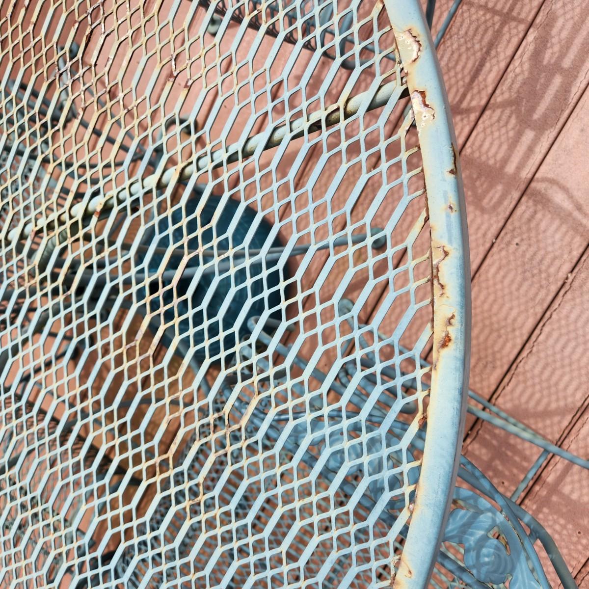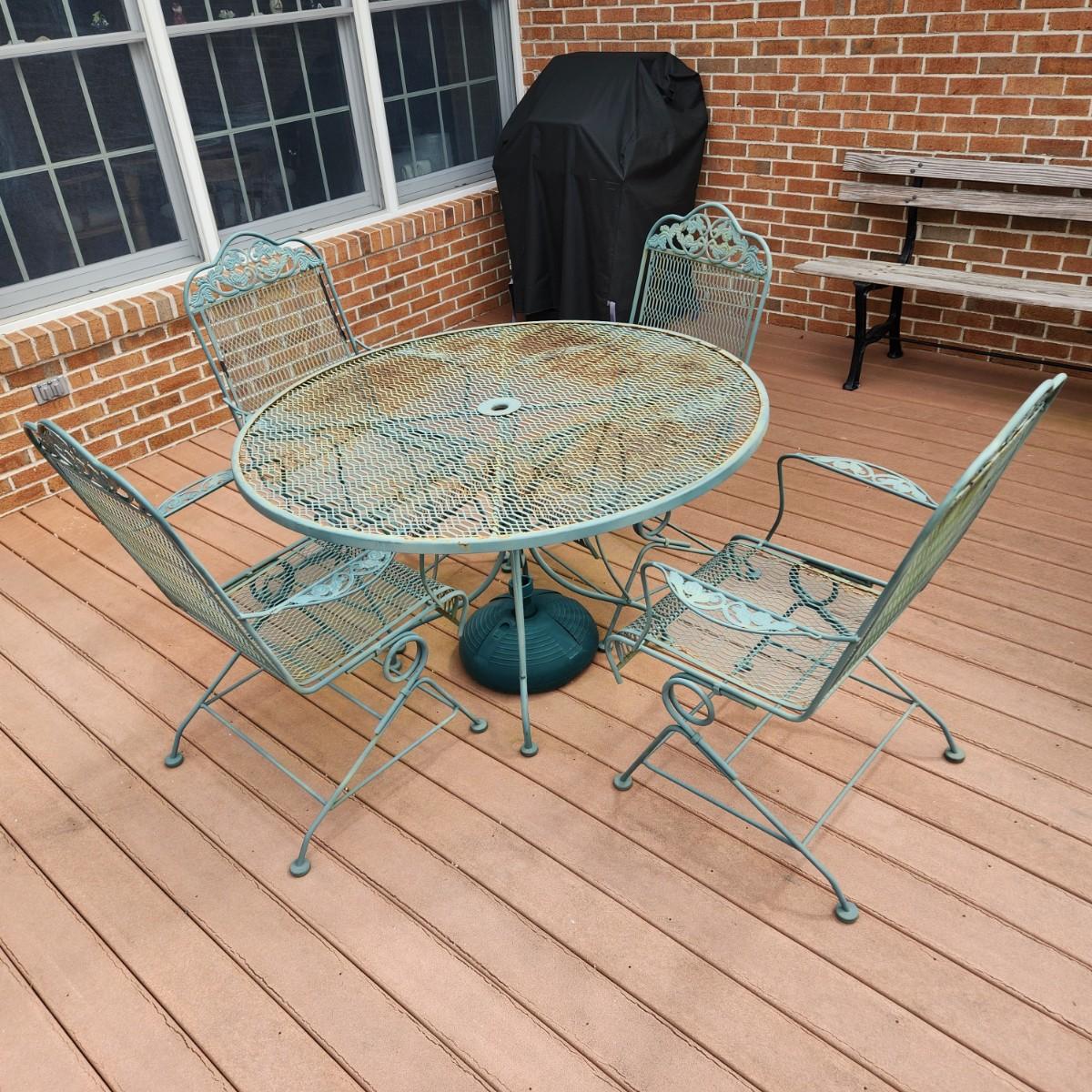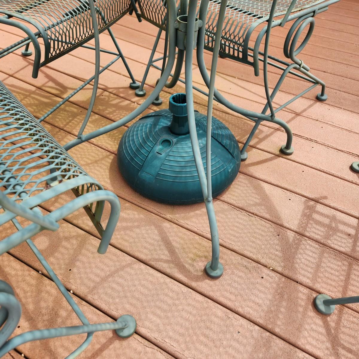 Wire Mesh Patio Table W 4 Spring Chairs 48" Diameter with Umbrella and Stand