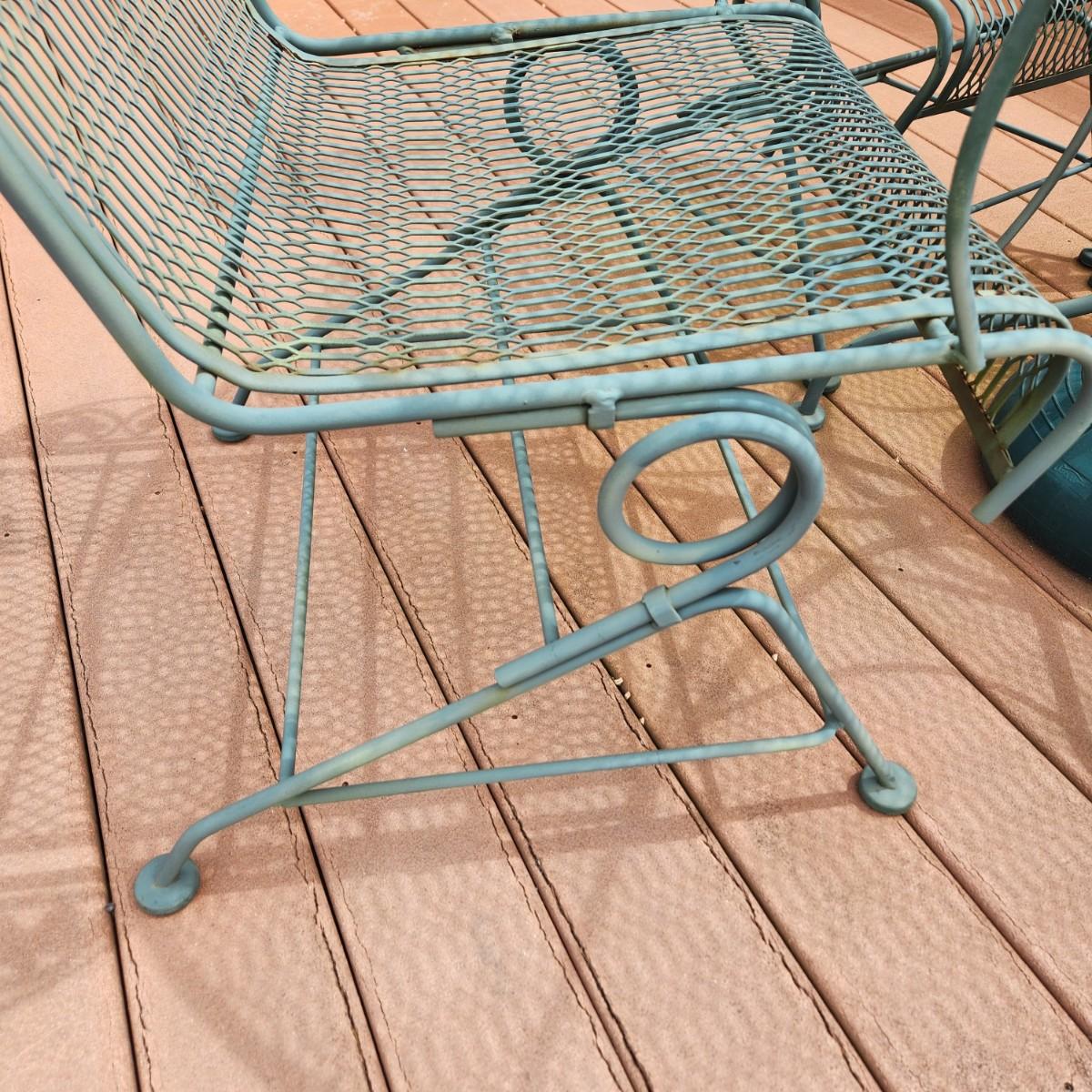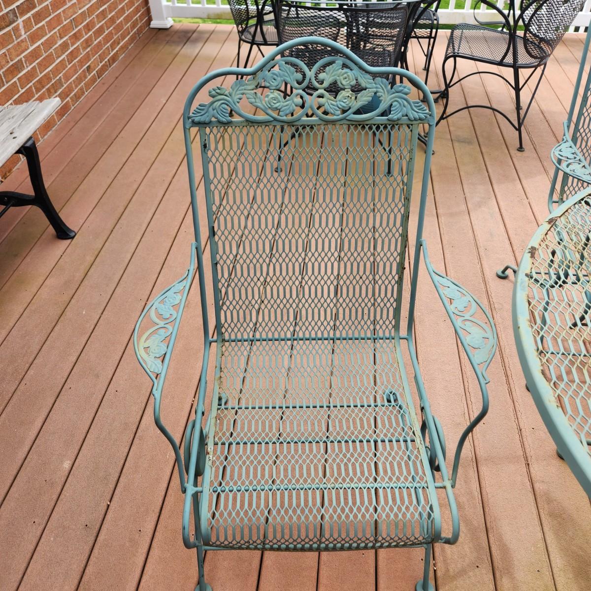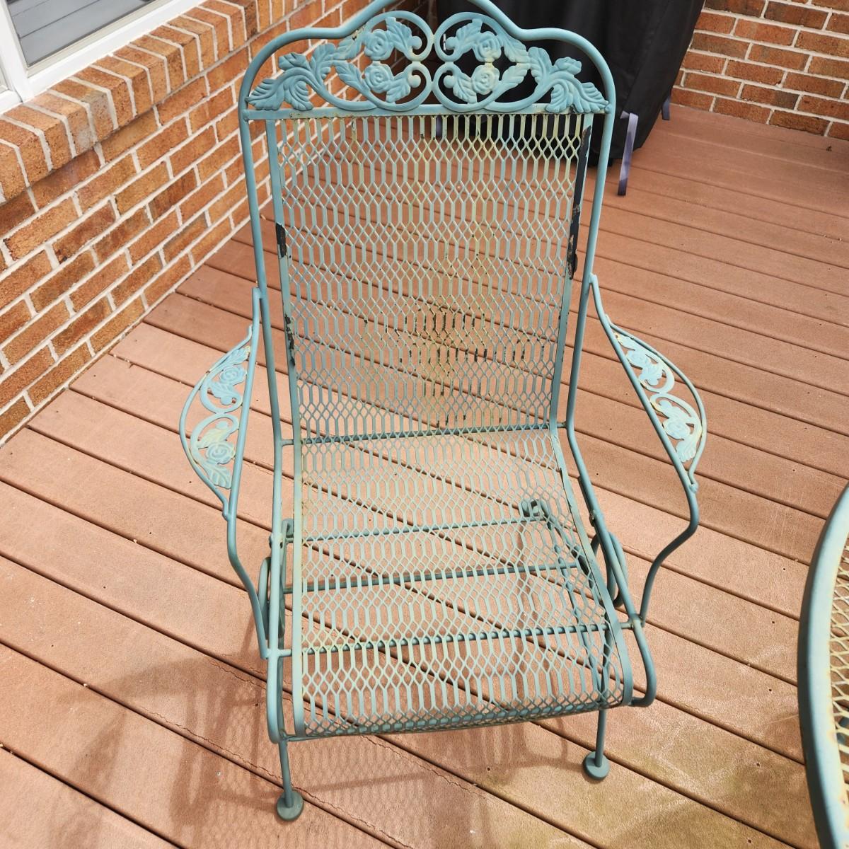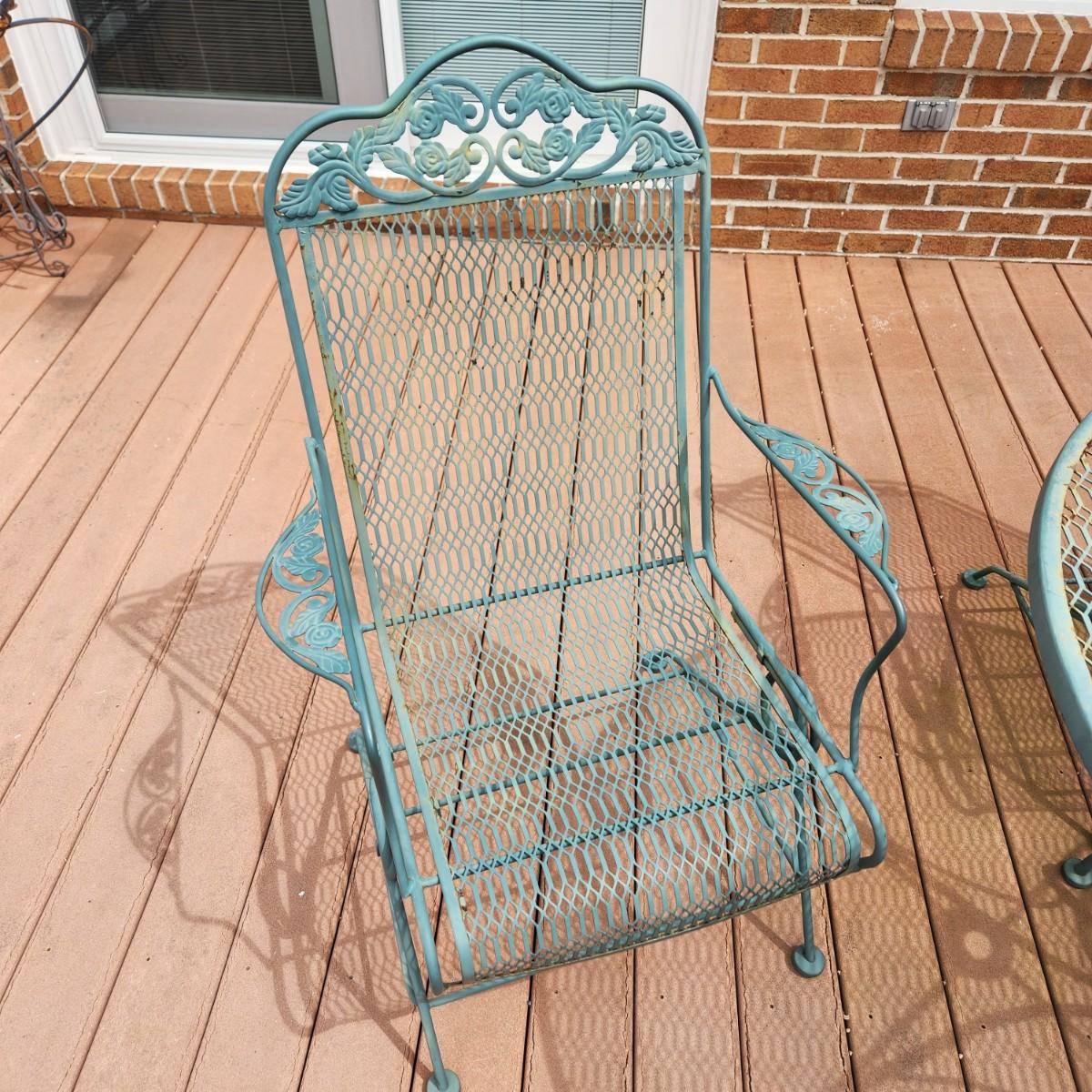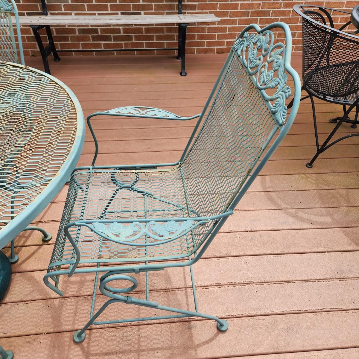 Wire Mesh Patio Table W 4 Spring Chairs 48" Diameter with Umbrella and Stand