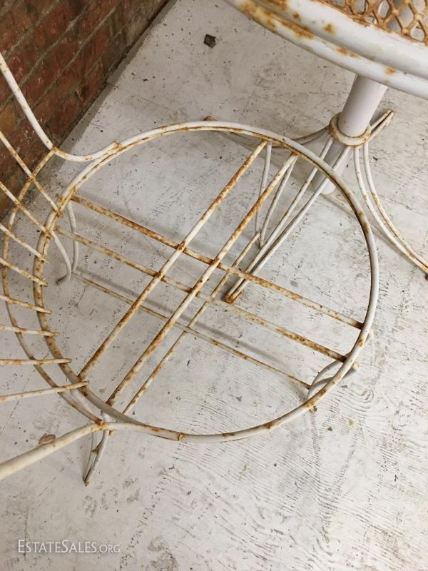 Wire Patio Bistro Set, adjustable table Good over all condition light surface rust, 30" round table 18" to 29" height on adjustable table. (this item was sold in the last auction but not picked up and paid for)