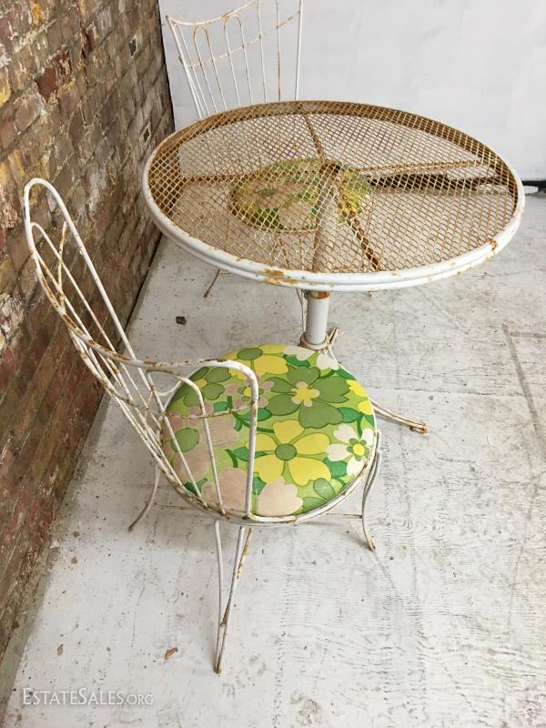 Wire Patio Bistro Set, Homecrest, adjustable table 1960's vintage MCM