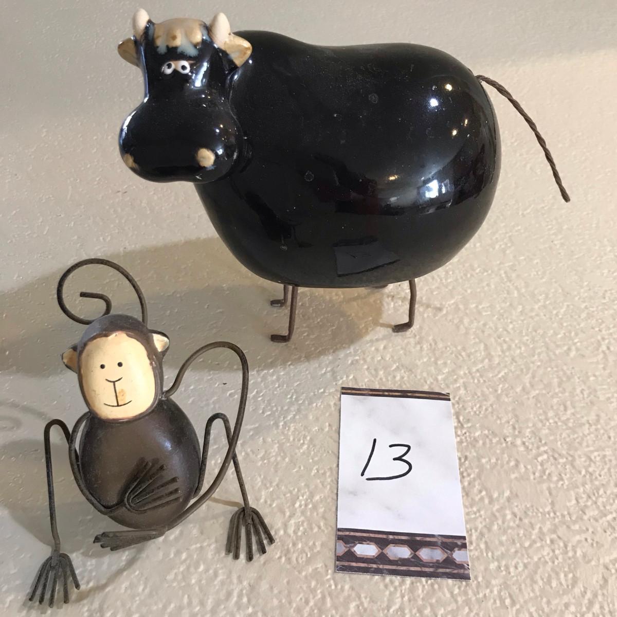 Wire Porcelain Decor Cow & Monkey