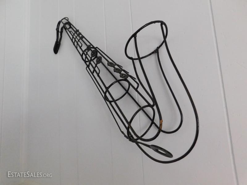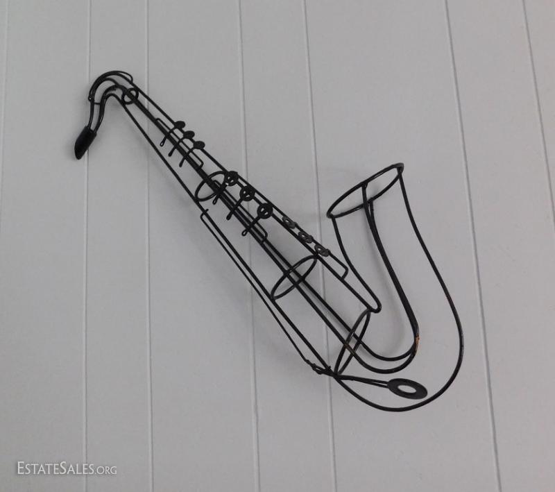 Large metal wire saxophone wall décor. Can be used as flower or plant holder. Nice item.