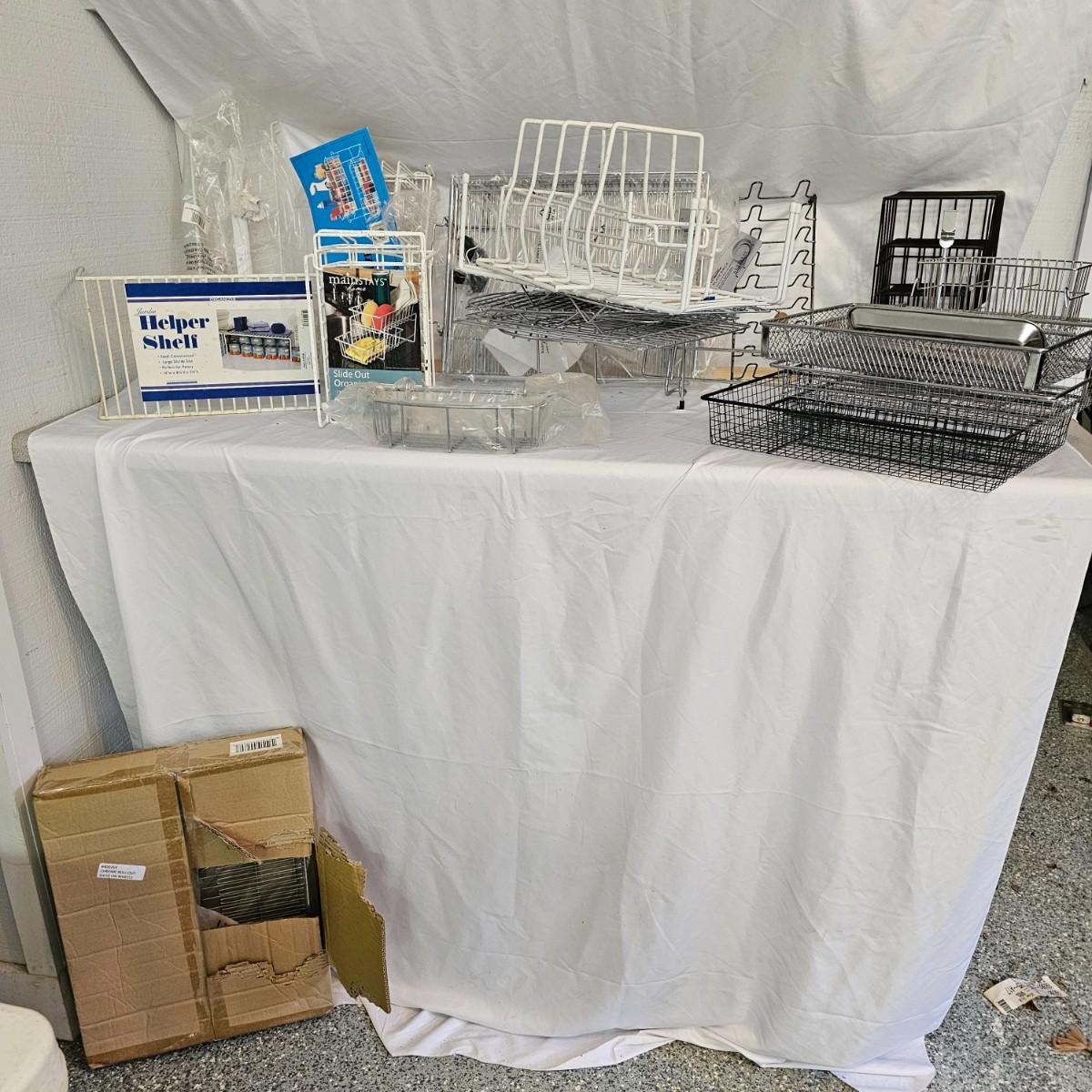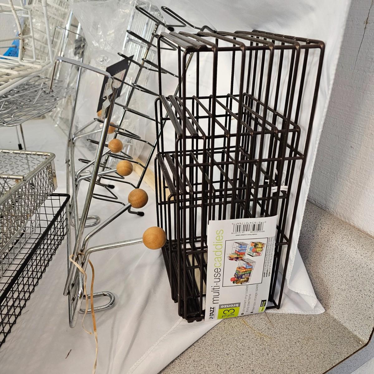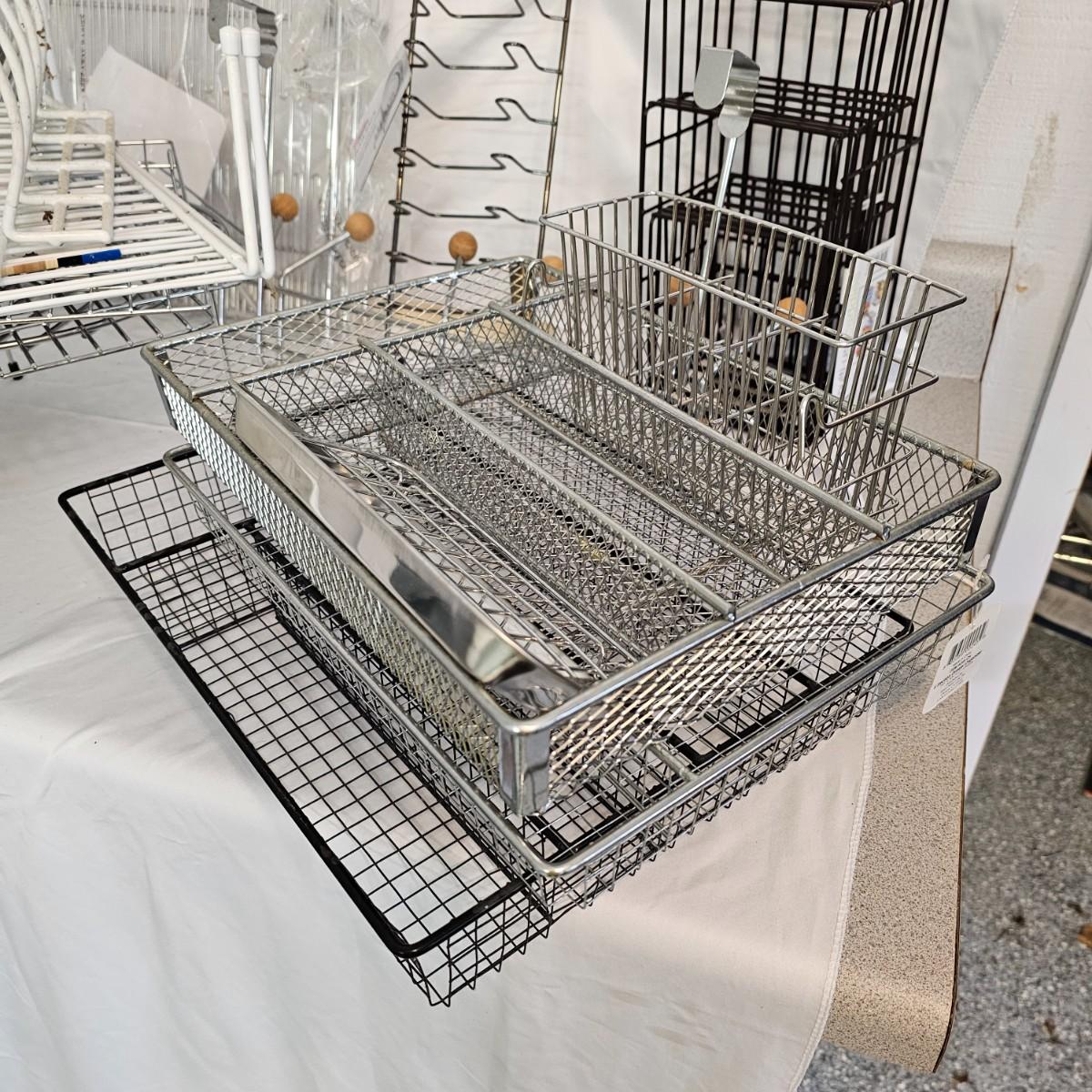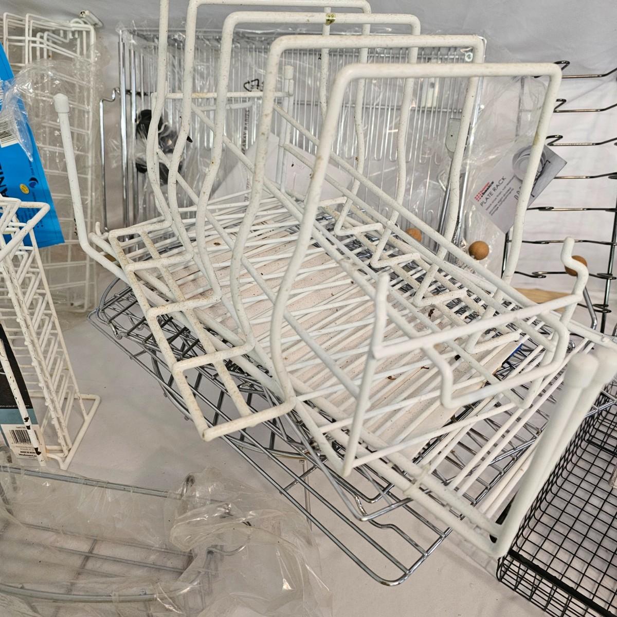 Several different styles of wire shelf organizers. Some vinyl covered, some plain wire. Drawer, shelf, sliding items. Various sizes from 11" x 7" x 11.5"h to 18" x 15" x3"h. Some items have been used, others in original packaging. See photos for details. Shipping available.