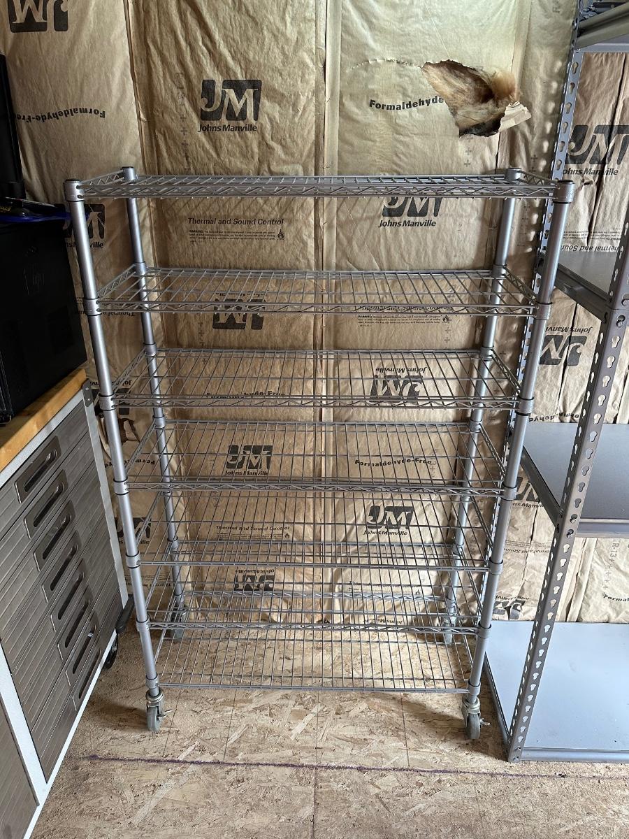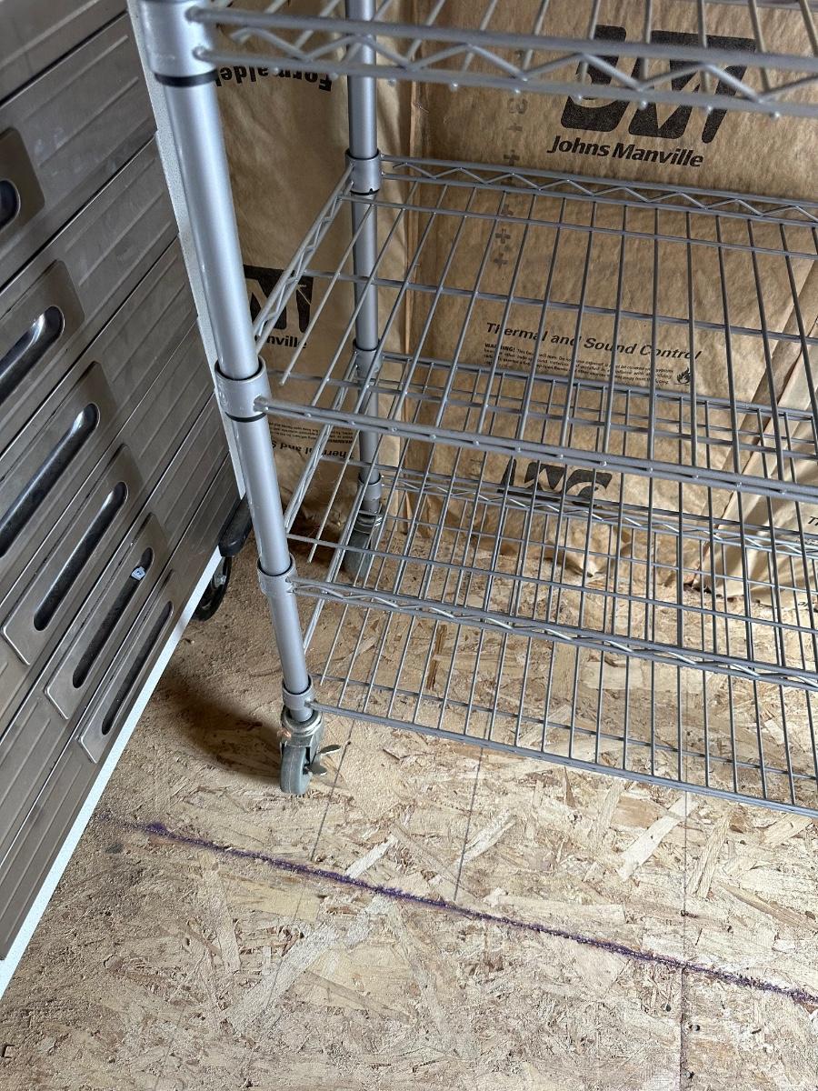 WIRE STORAGE RACK ON CASTERS