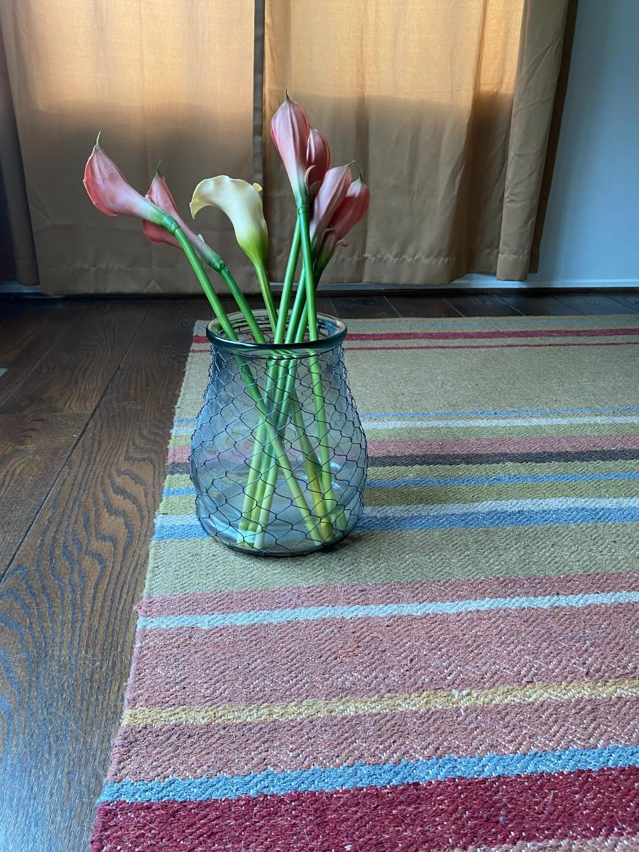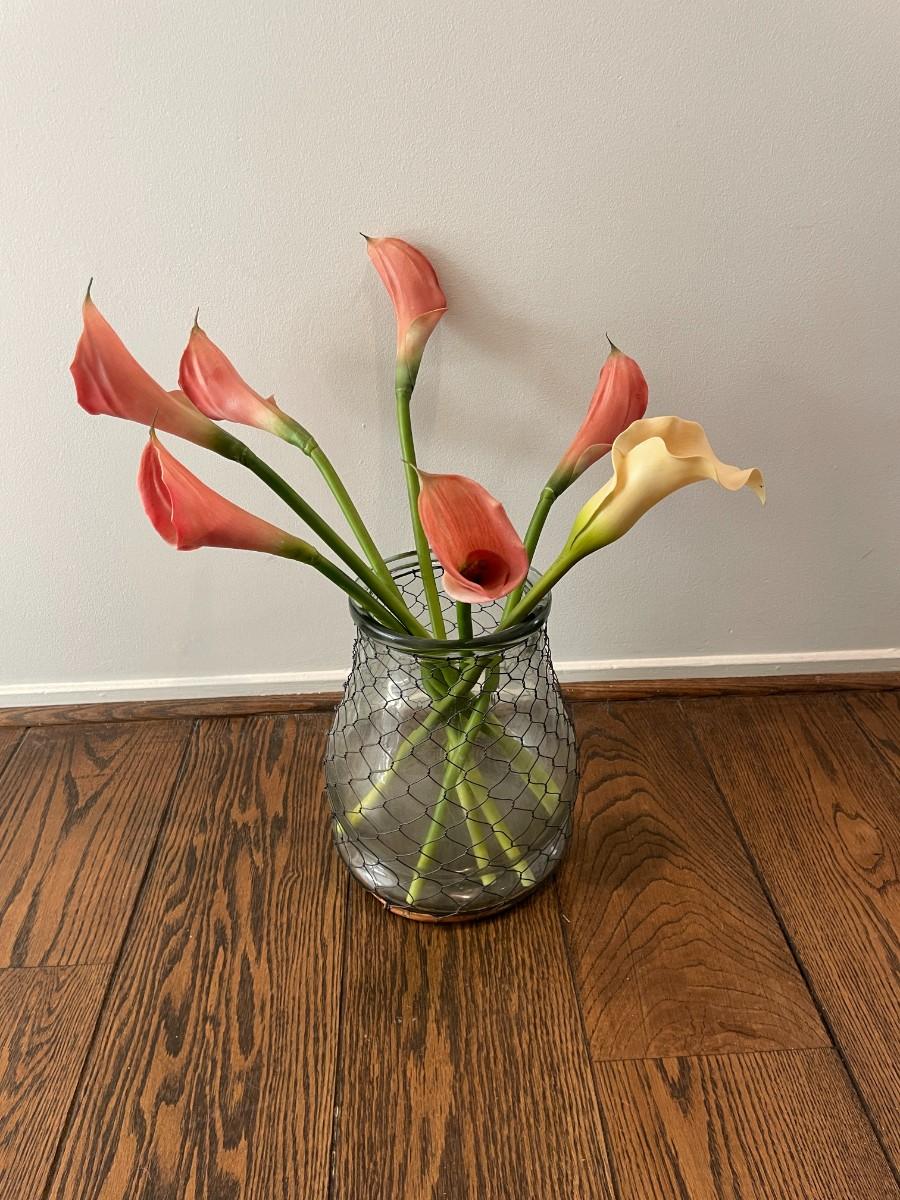 Wire Wrapped Flower Vase and Faux Flowers