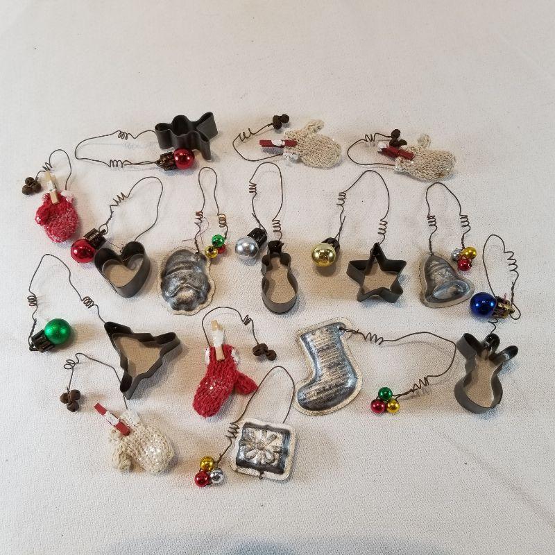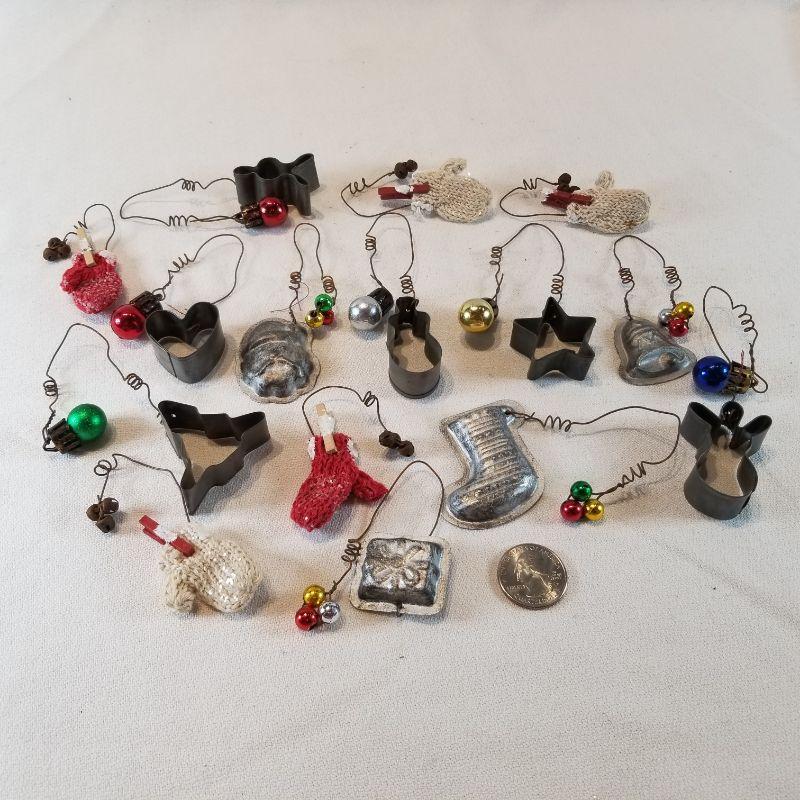 This is a lot of 15 wired mini ornaments. Great for any small tree. They just hook over the tree branches with ornaments on both ends - it's like getting 30 mini ornaments. How fun! All are in very good condition and ready for your creative ideas.